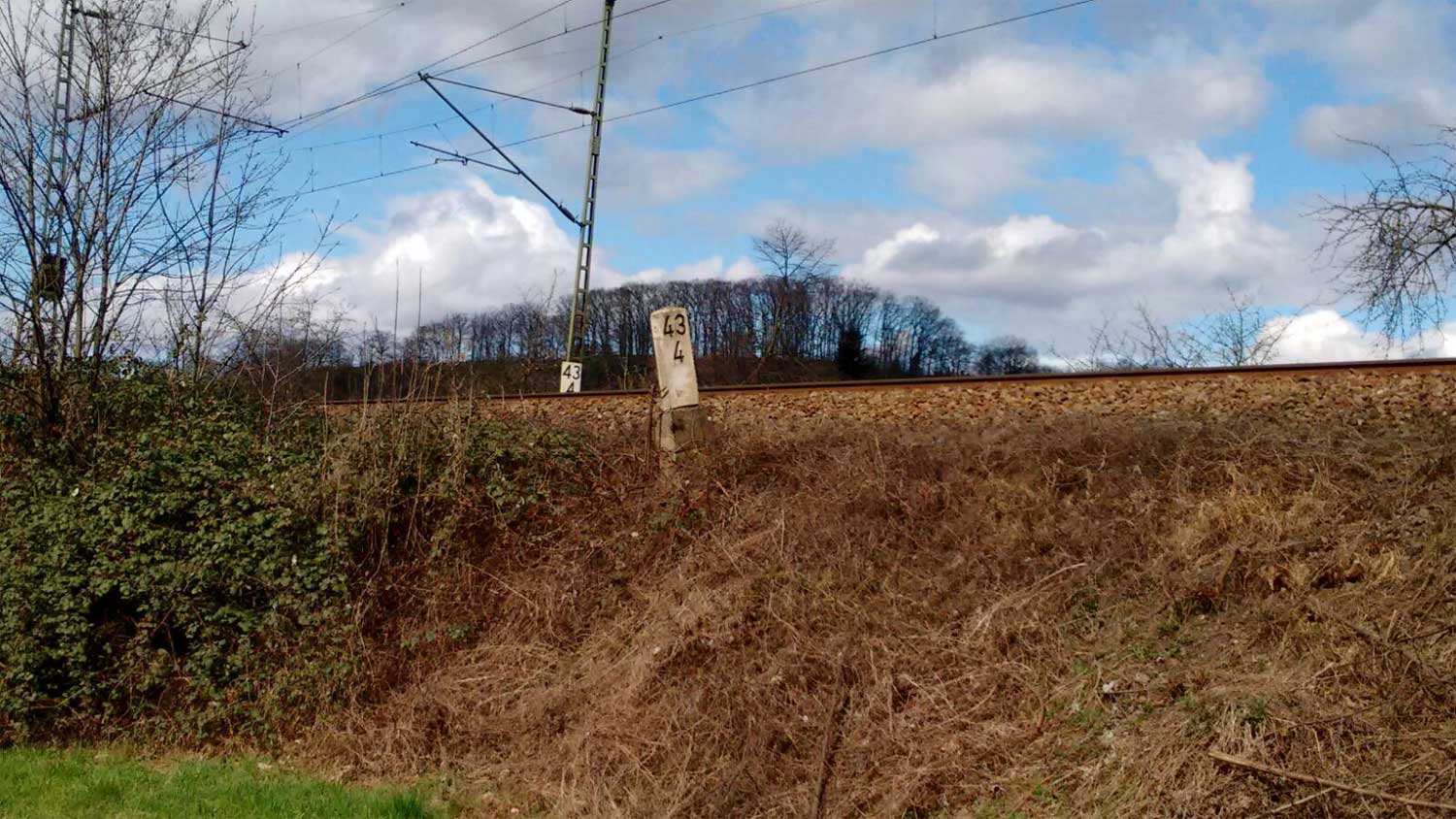 km 1,0 gehört zu den beiden Gleisen der Strecke