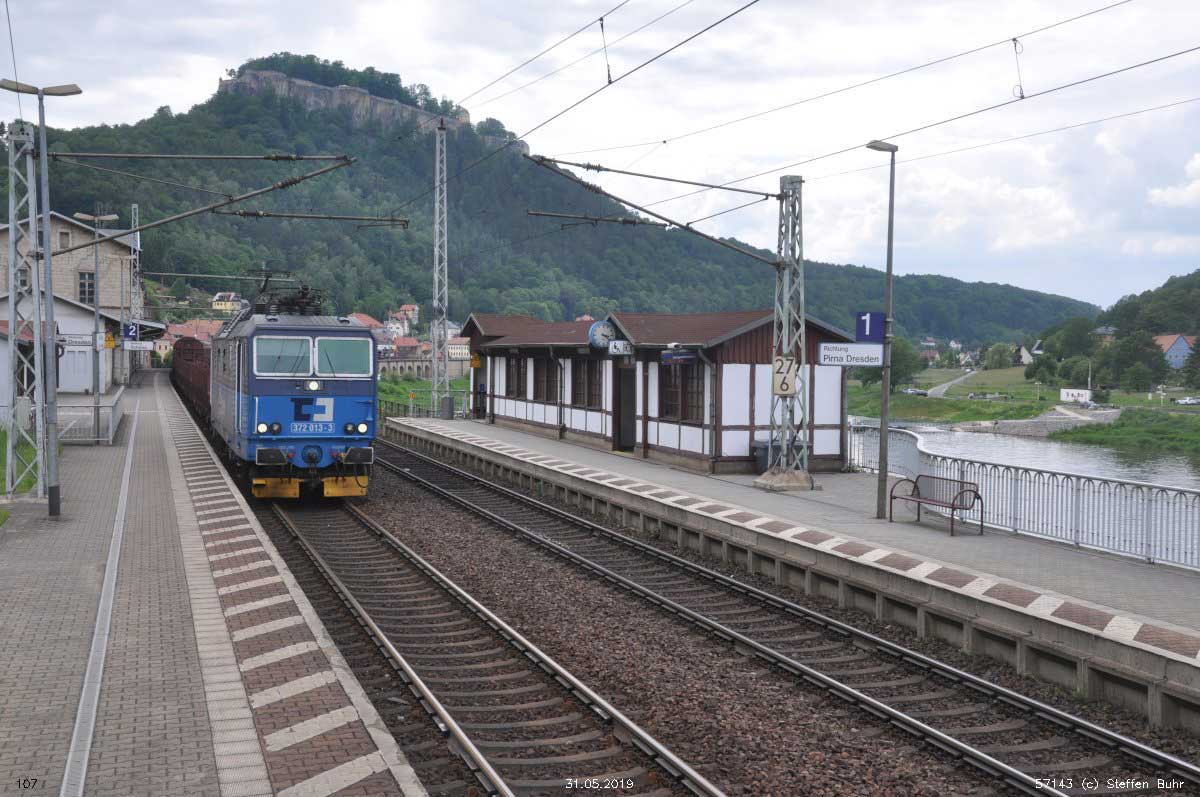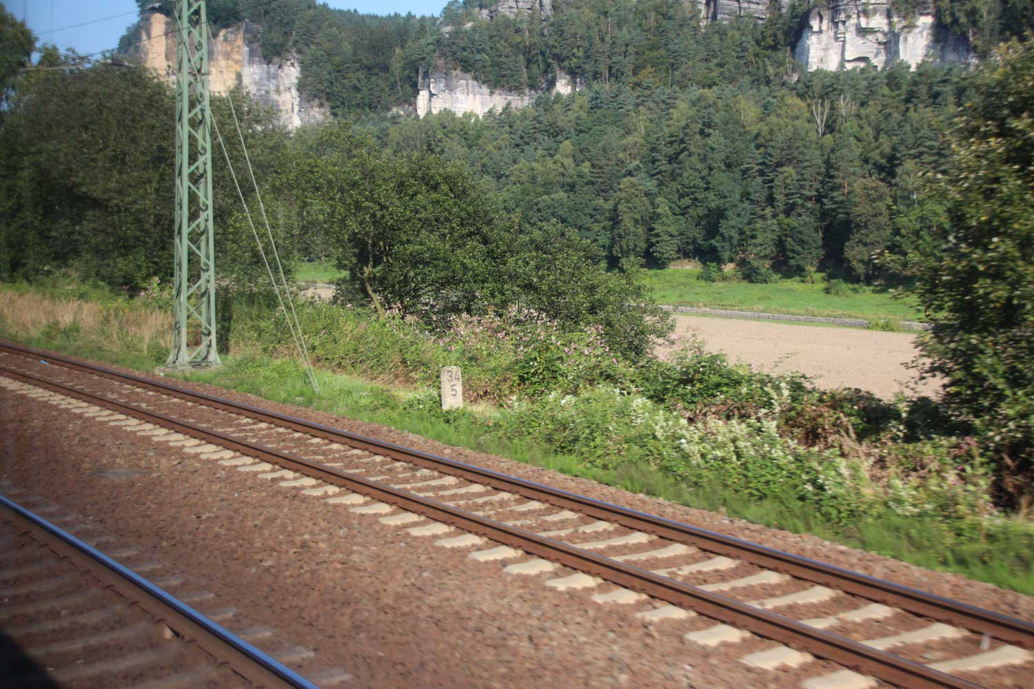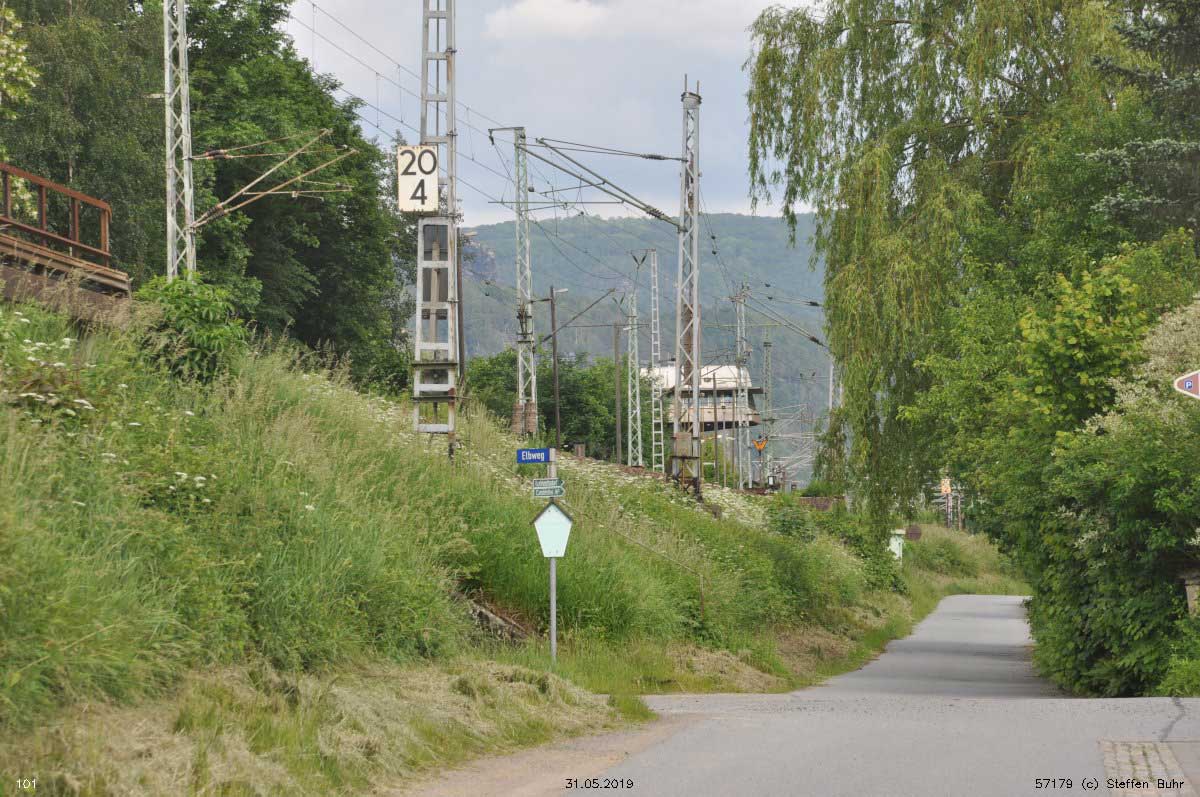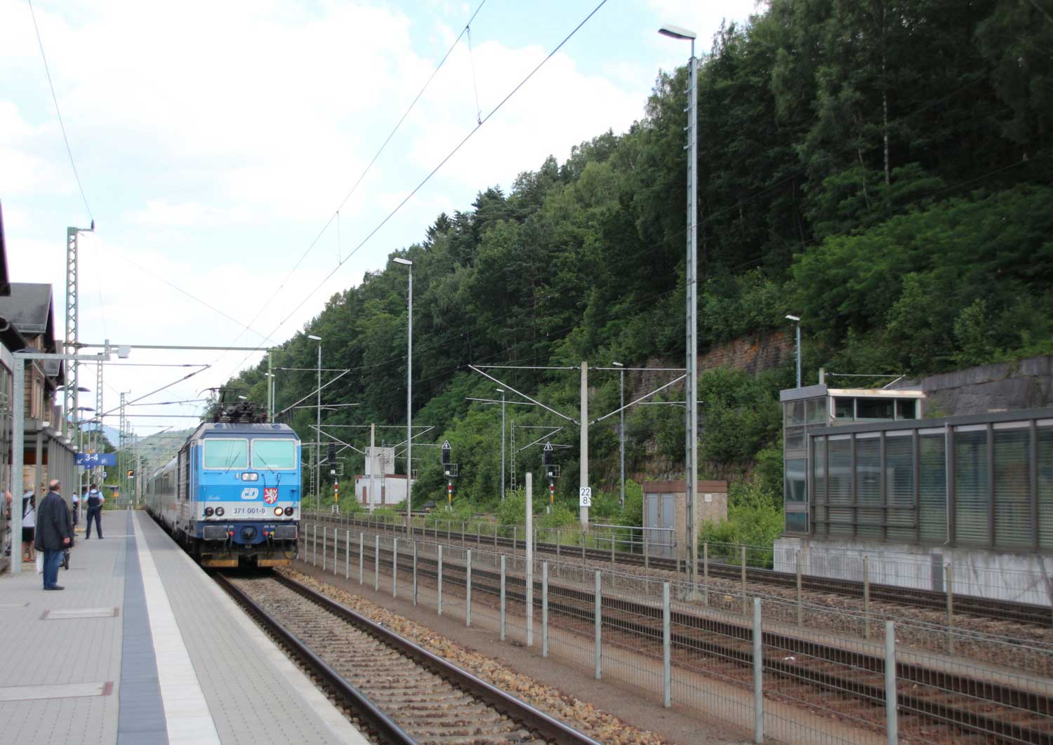 Děčín hlavní nádraží (Bodenbach) 0,548 - Grenze Tschechien/Deutschland 11,860 - Schöna 13,89 - Pirna 45,44 - Dresden Hbf 62,49 - Dresden Neustadt 66,33 (6240)