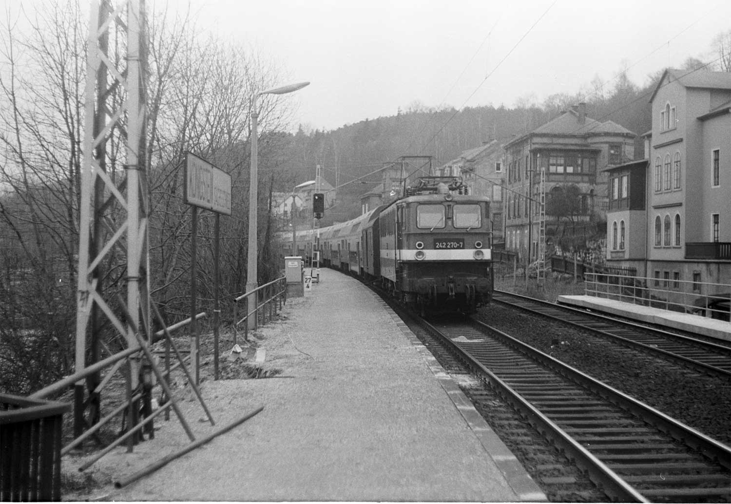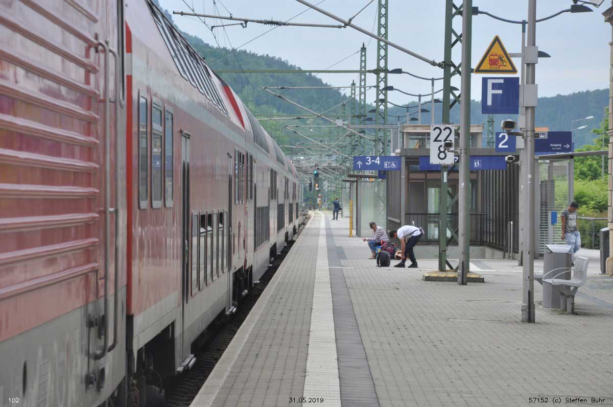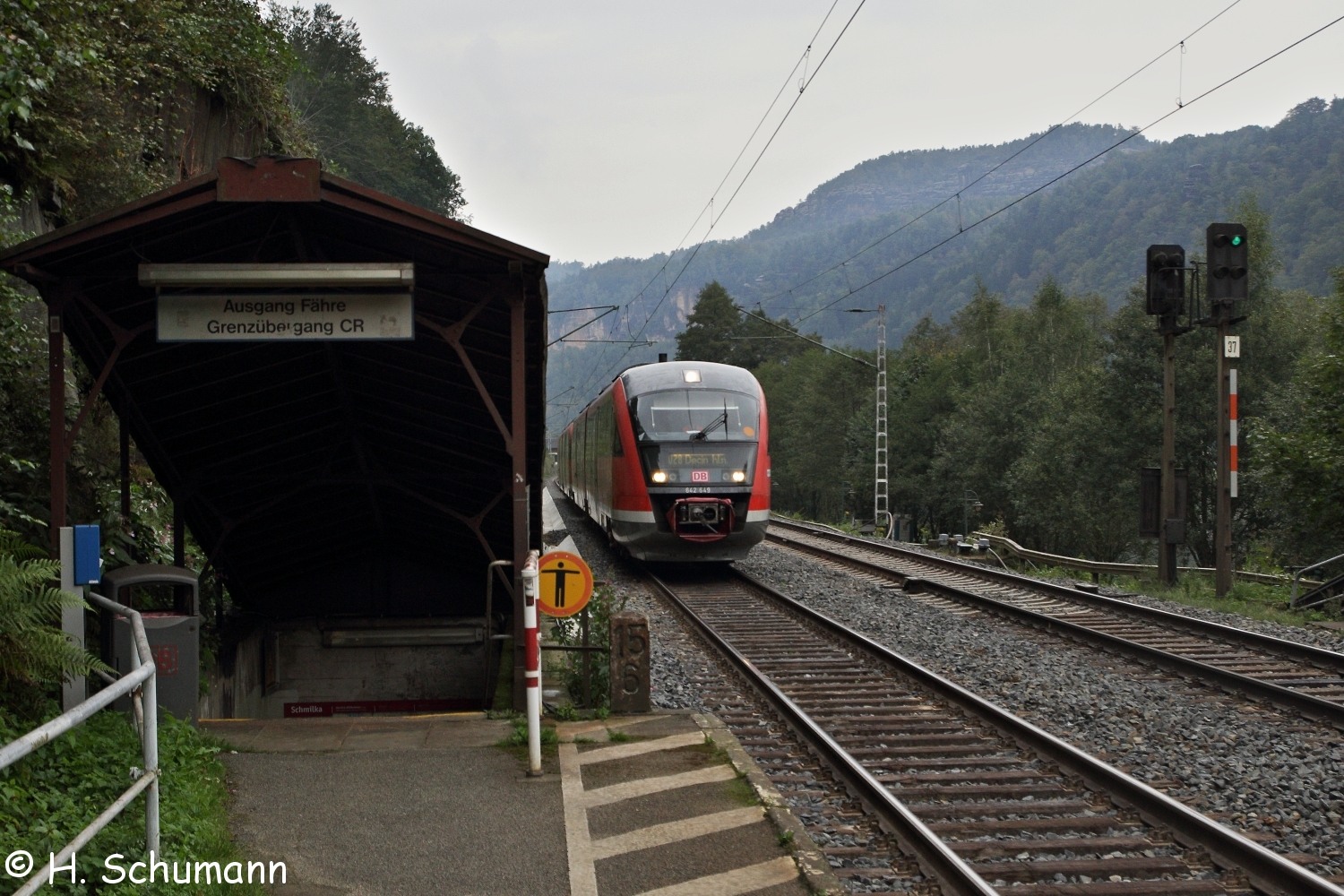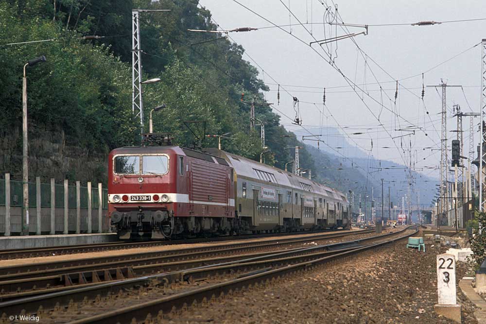 Děčín hlavní nádraží (Bodenbach) 0,548 - Grenze Tschechien/Deutschland 11,860 - Schöna 13,89 - Pirna 45,44 - Dresden Hbf 62,49 - Dresden Neustadt 66,33 (6240)