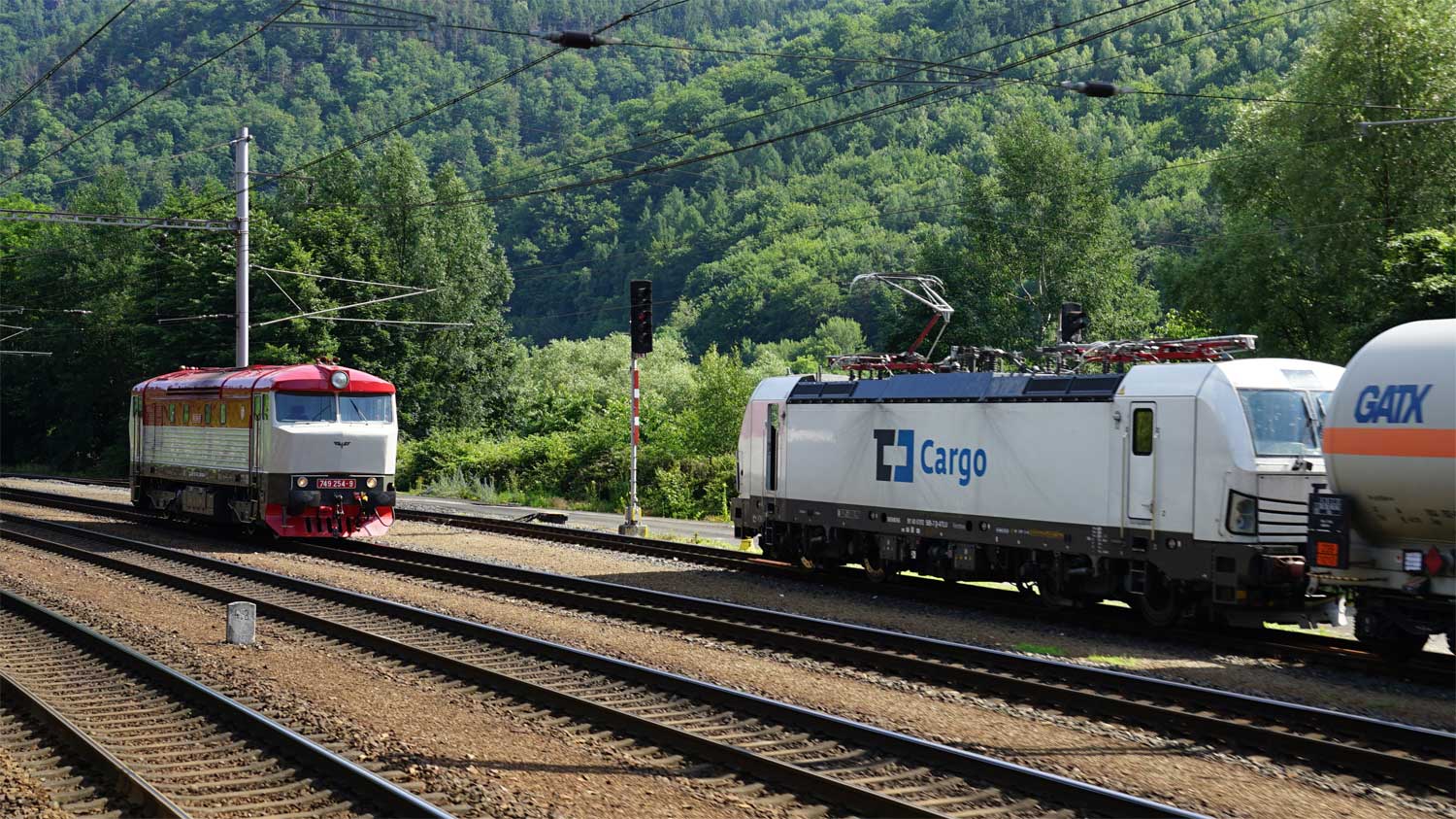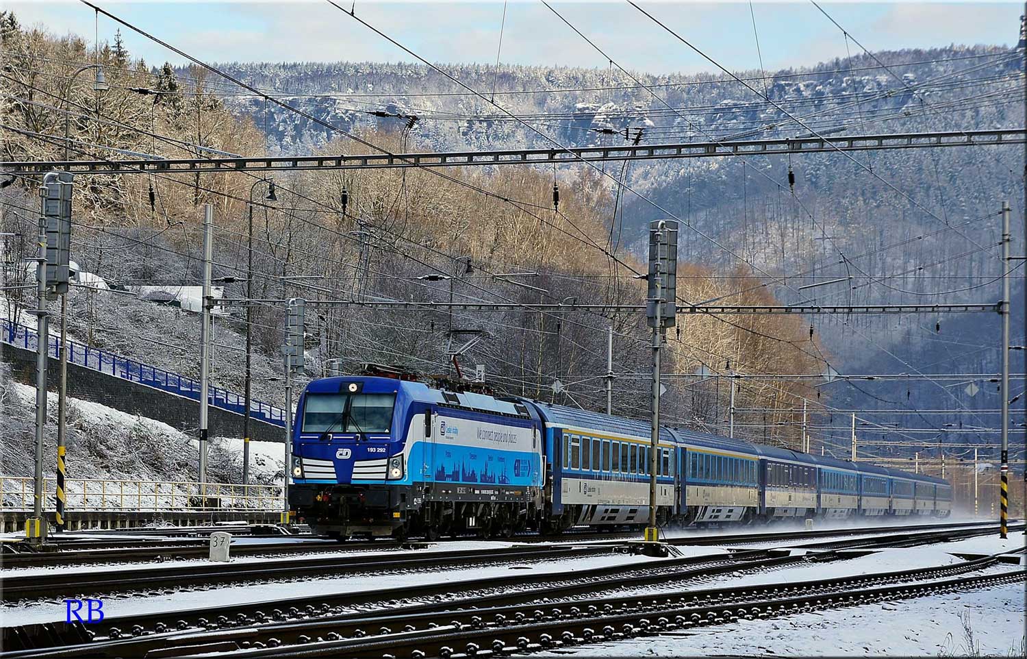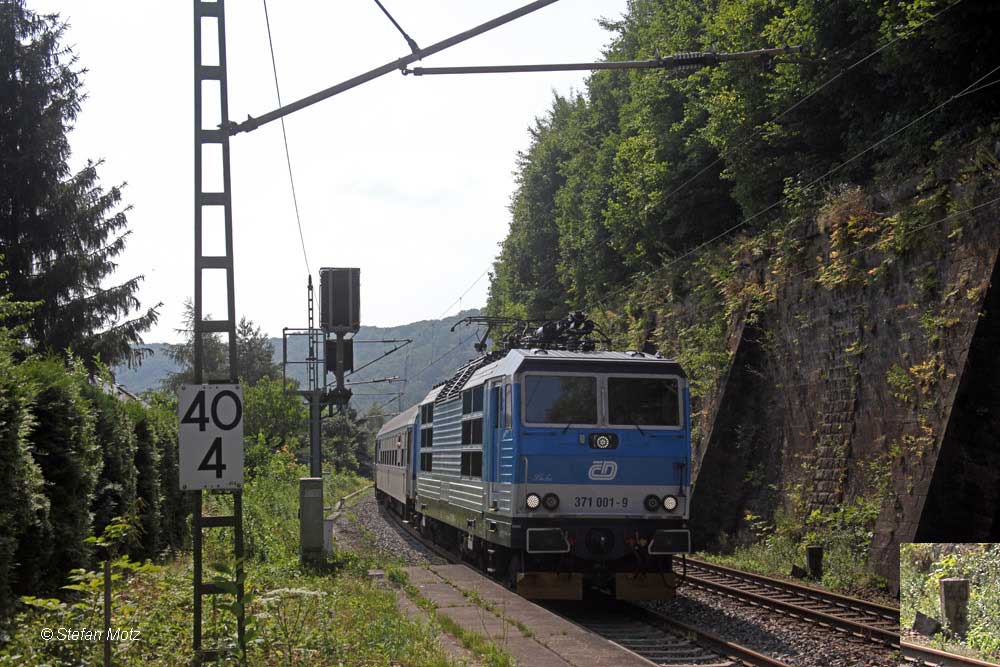 km 3,7 und km 3,8 in Děčín-Prostřední Žleb (Mittelgrund) - 193 292 mit EC 171