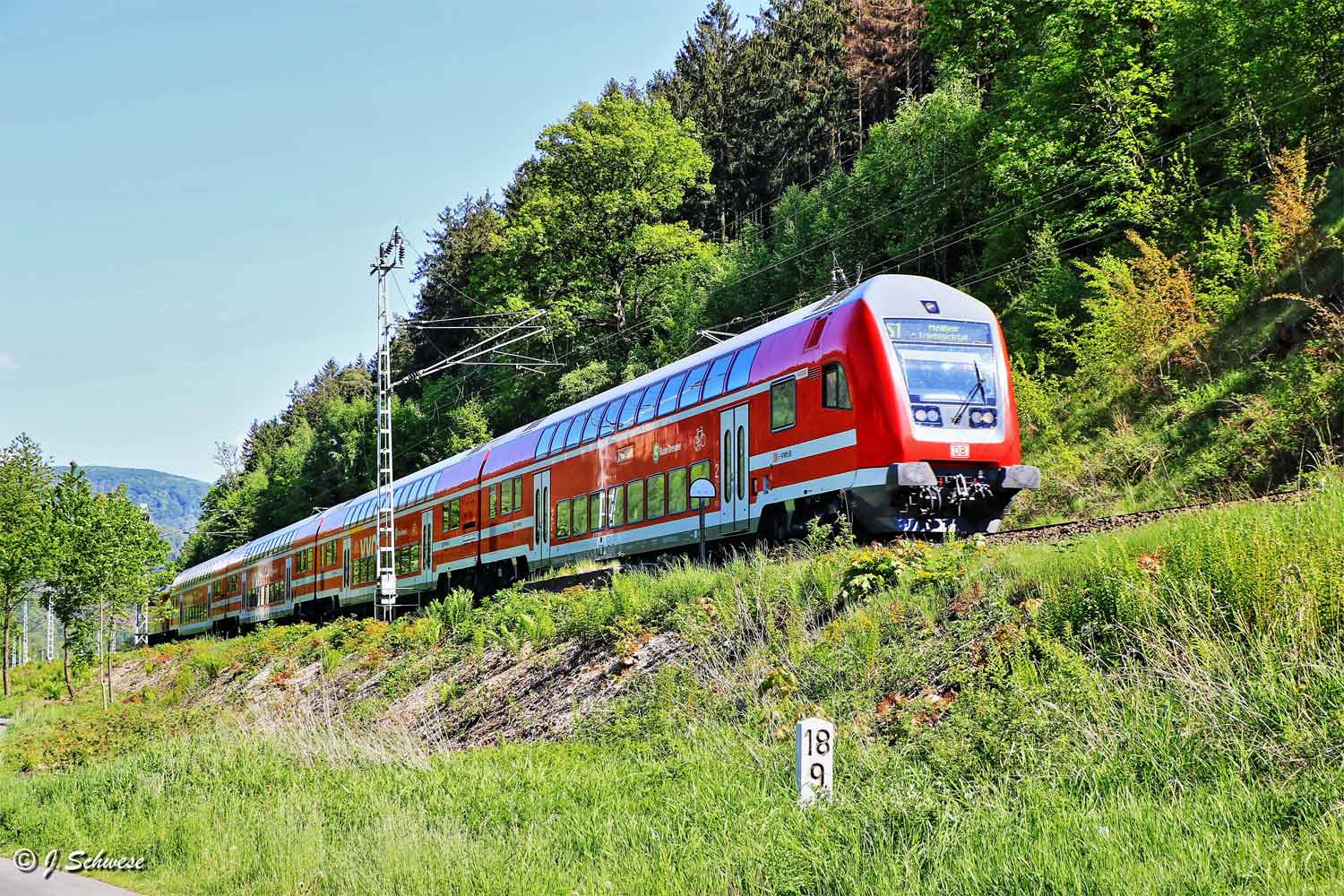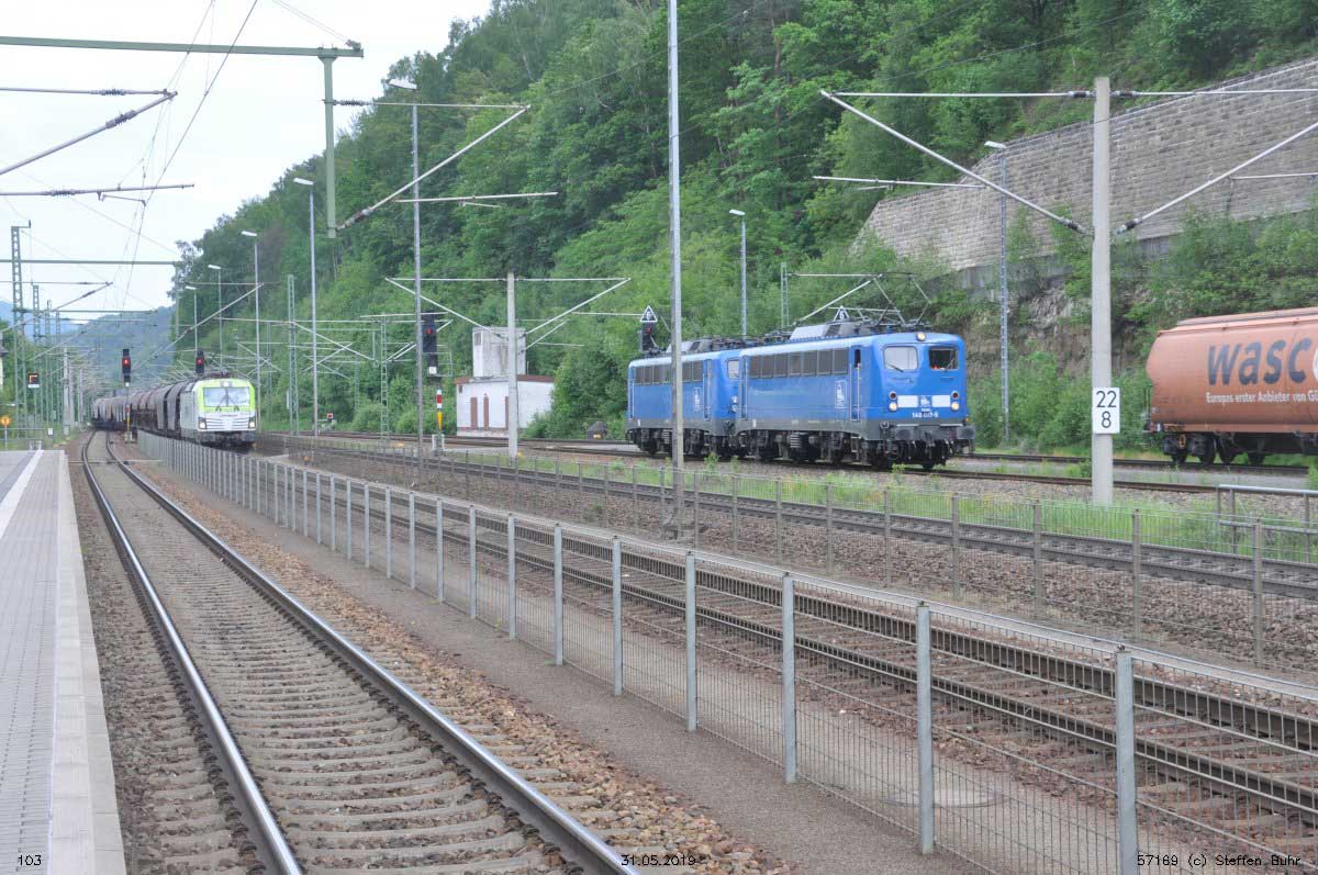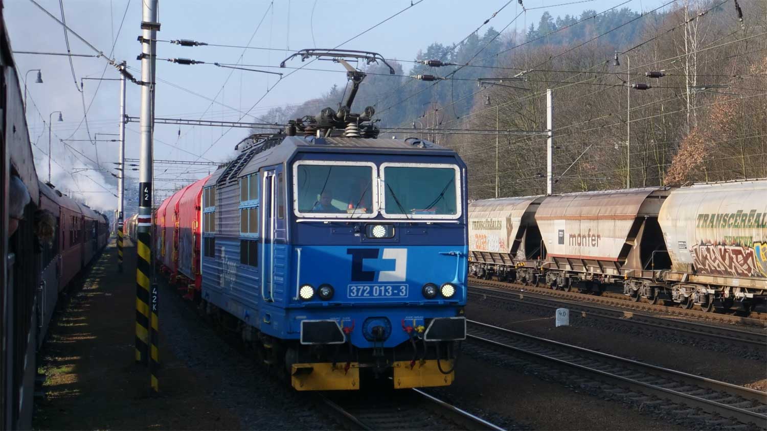 km 3,7 und km 3,8 in Děčín-Prostřední Žleb (Mittelgrund) - 193 292 mit EC 171