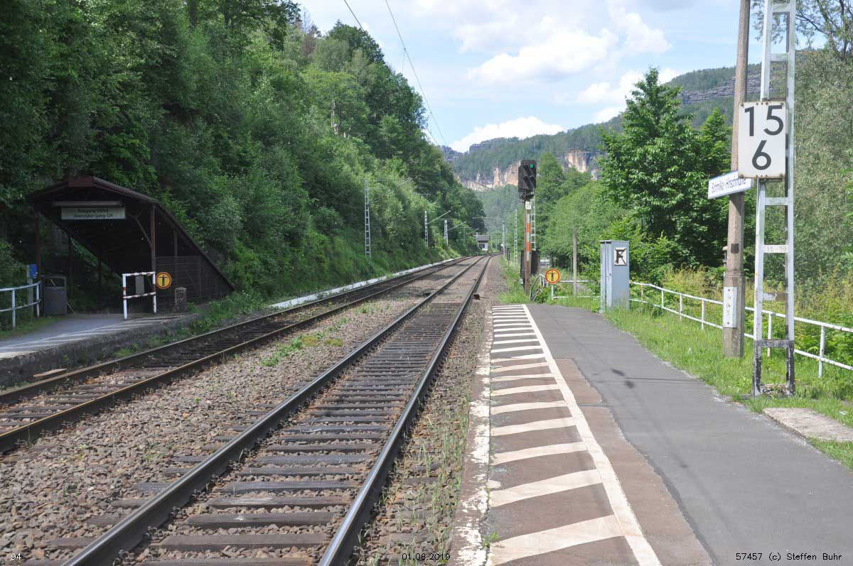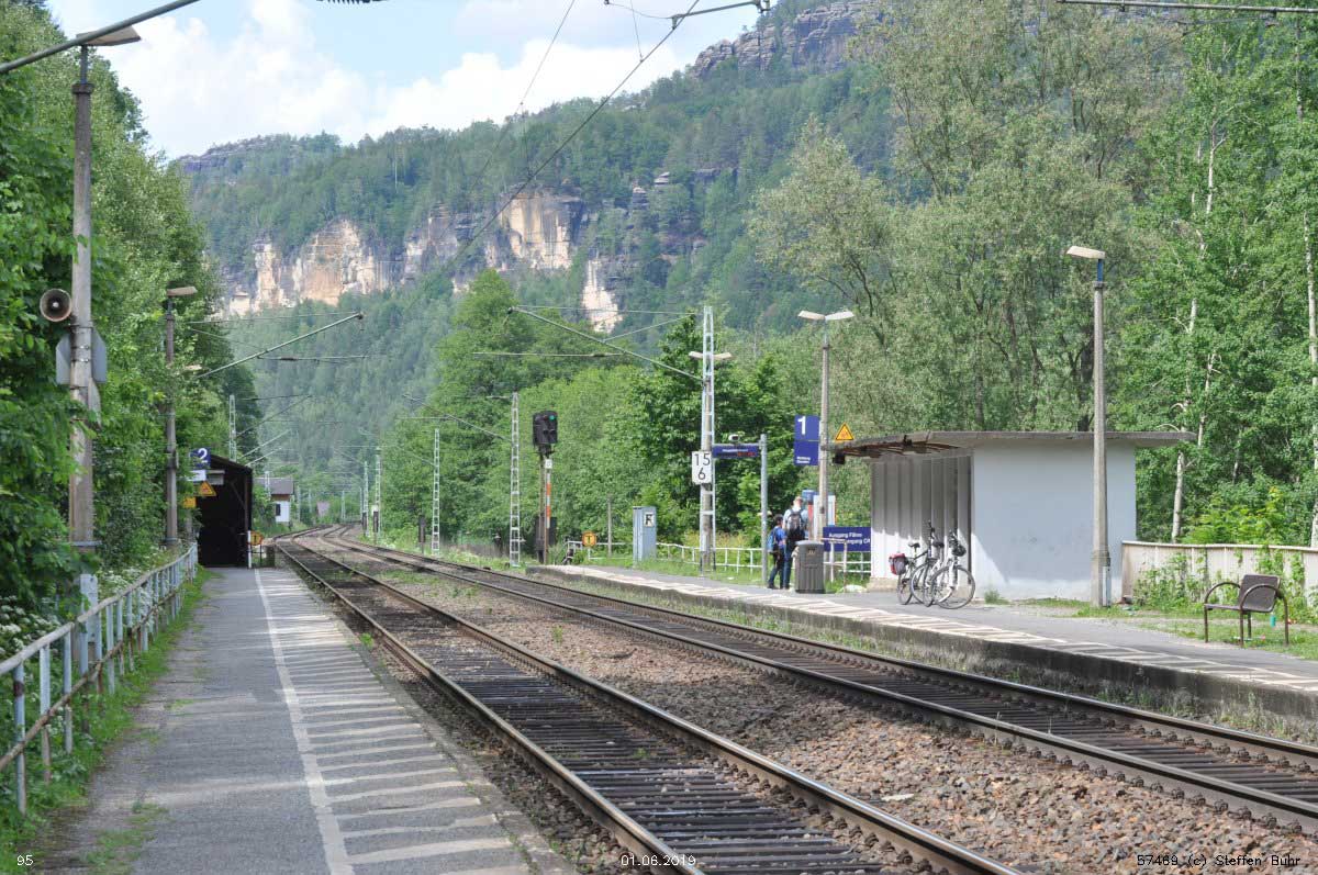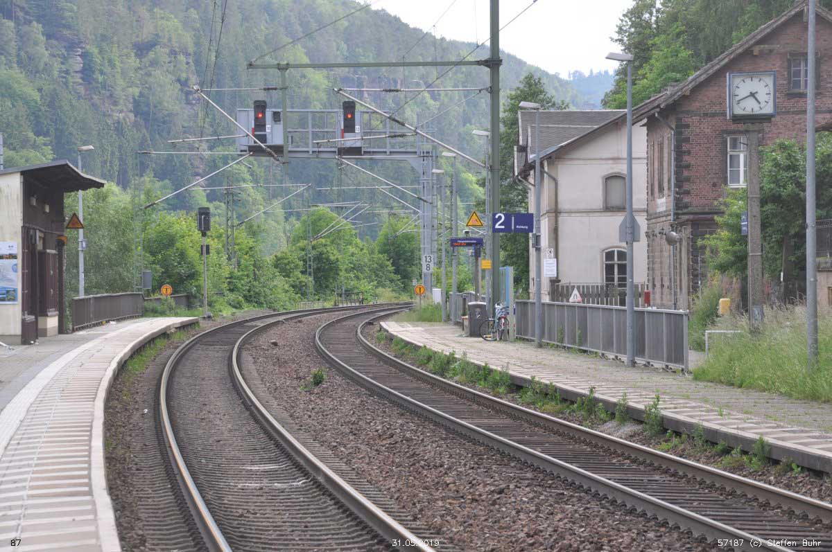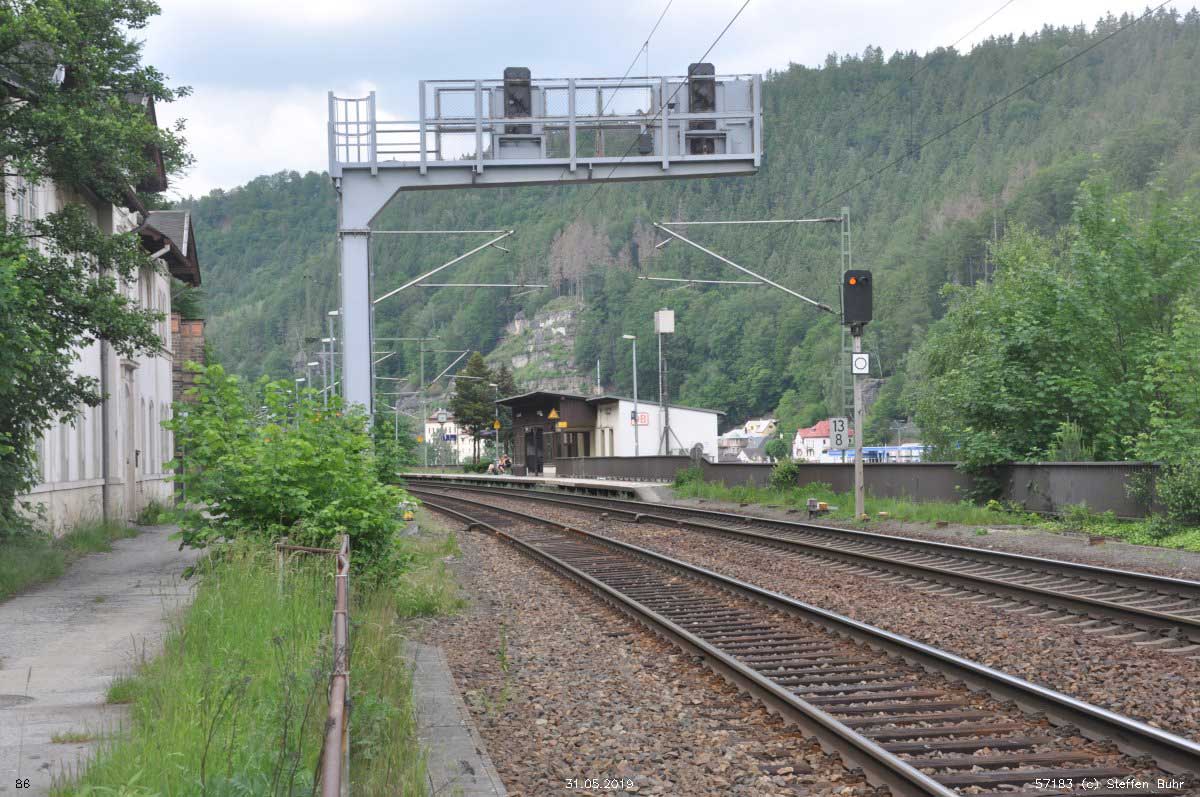 Bad Schandau | 22,76 | km 64,19 der Strecke Bautzen -0,36 - Streckenunterbrechung- Wilthen 13,98 - Neukirch (Laus) West 23,37 - Neustadt (Sachs) 36,25 - Sebnitz (Sachs) 48,76 - Bad Schandau 64,19 (BS) (6216) |