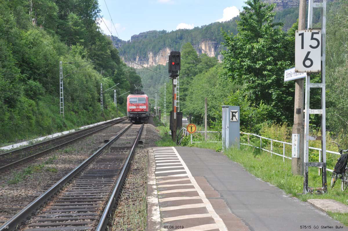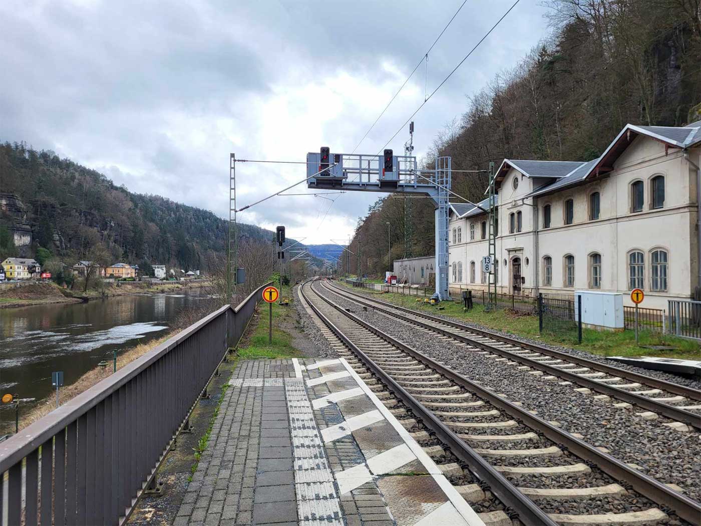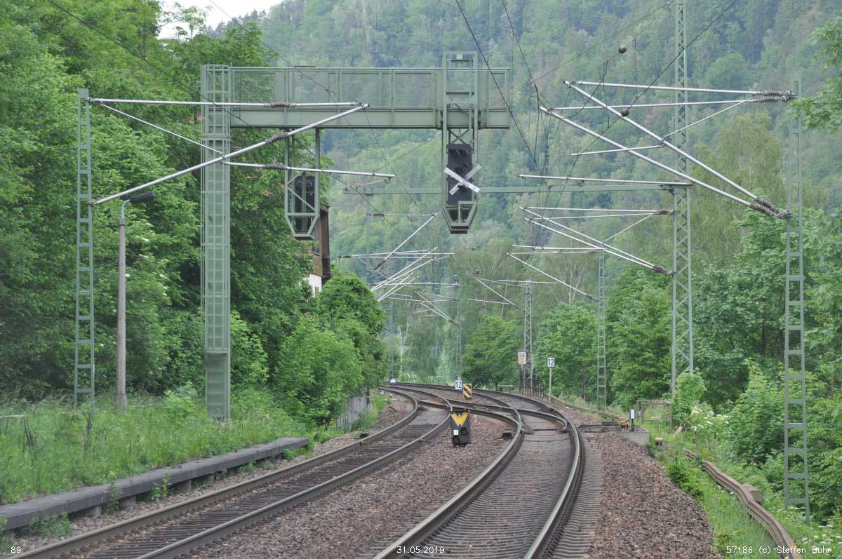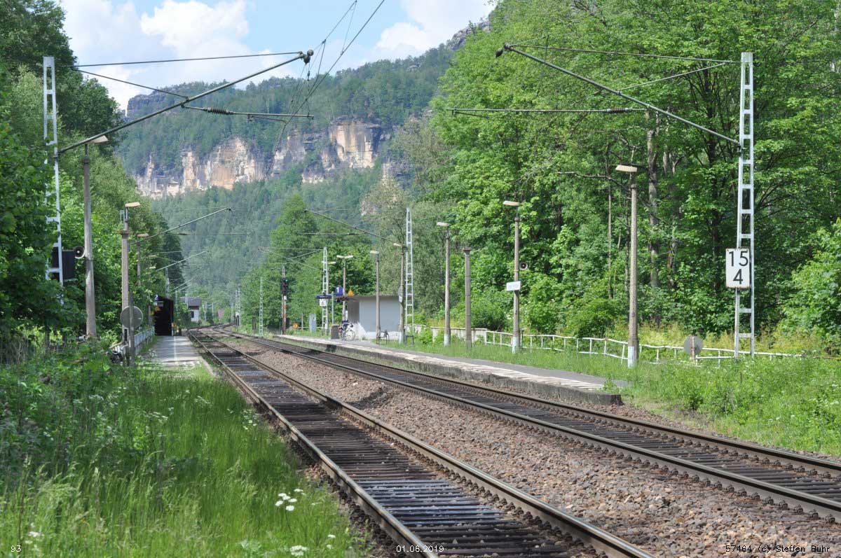 Bad Schandau | 22,76 | km 64,19 der Strecke Bautzen -0,36 - Streckenunterbrechung- Wilthen 13,98 - Neukirch (Laus) West 23,37 - Neustadt (Sachs) 36,25 - Sebnitz (Sachs) 48,76 - Bad Schandau 64,19 (BS) (6216) |