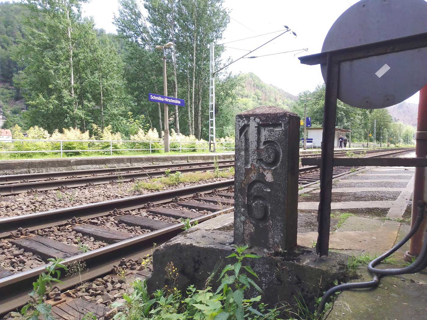 km 0,0 der Strecke Pirna 0,0 - Abzw. Pirna Süd 1,69 - Gottleuba 17,61 | ||