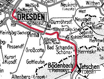 Bodenbach 0,55 - Reichsgrenze 11,859 - Dresden Hbf 62,49 - Dresden-Neustadt 66,33 (BD)