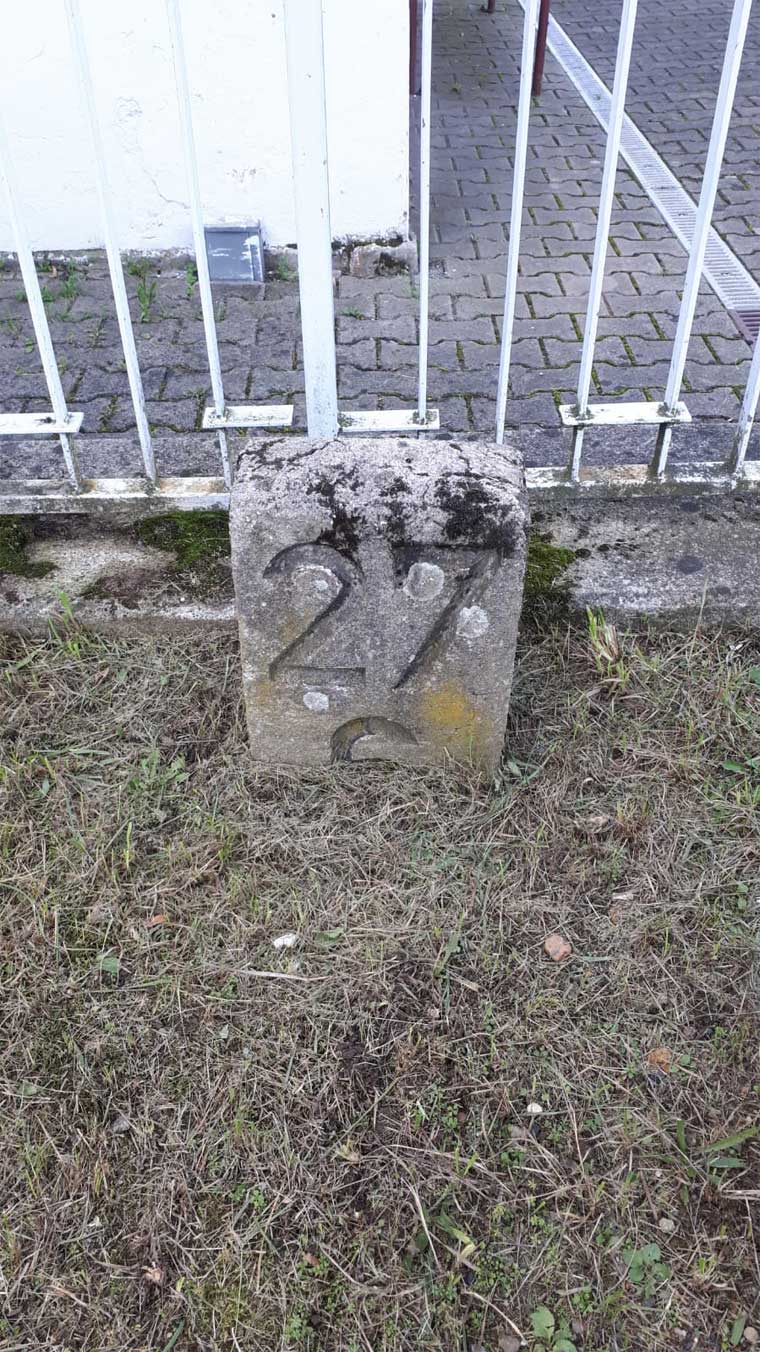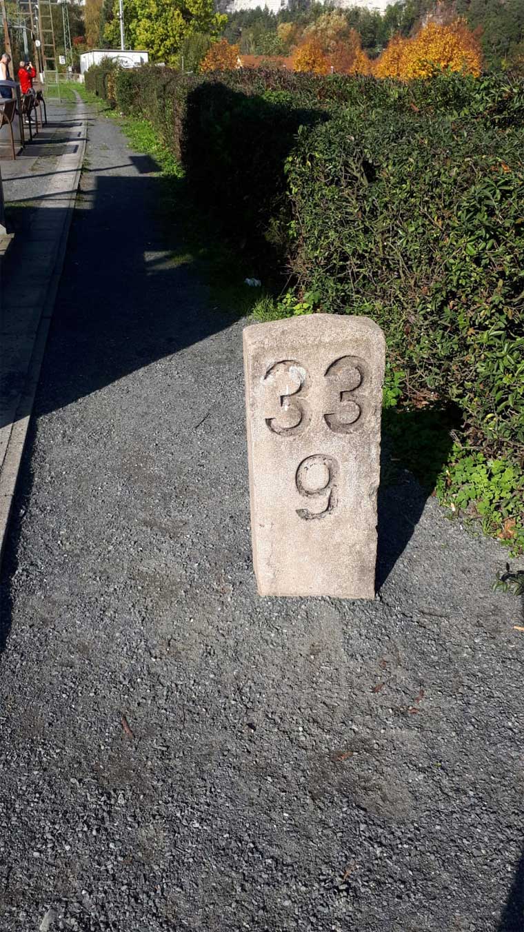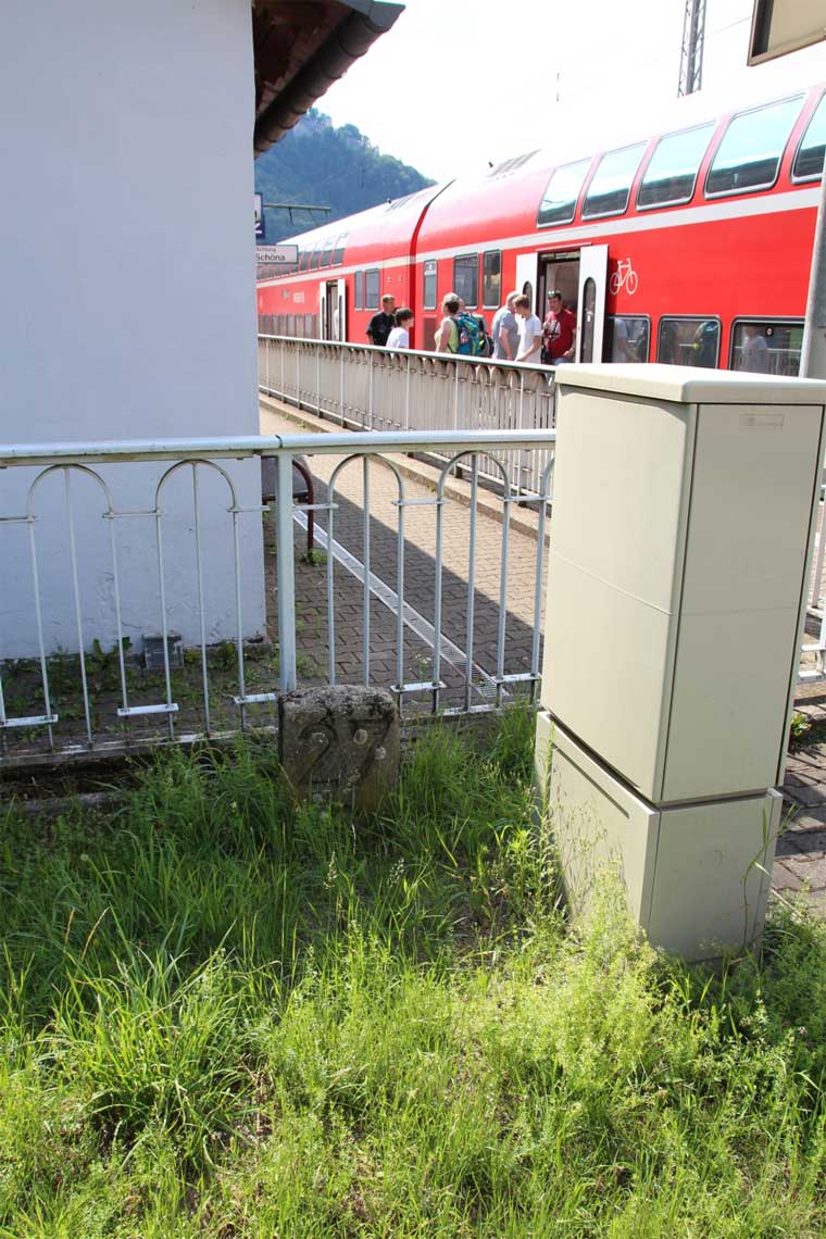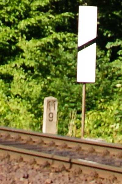Am westlichen Fußpunkt des Bogens 10 der Bahnhofshalle befindet sich ein besonderer Hektometerstein (Der Standort ist nicht korrekt!):