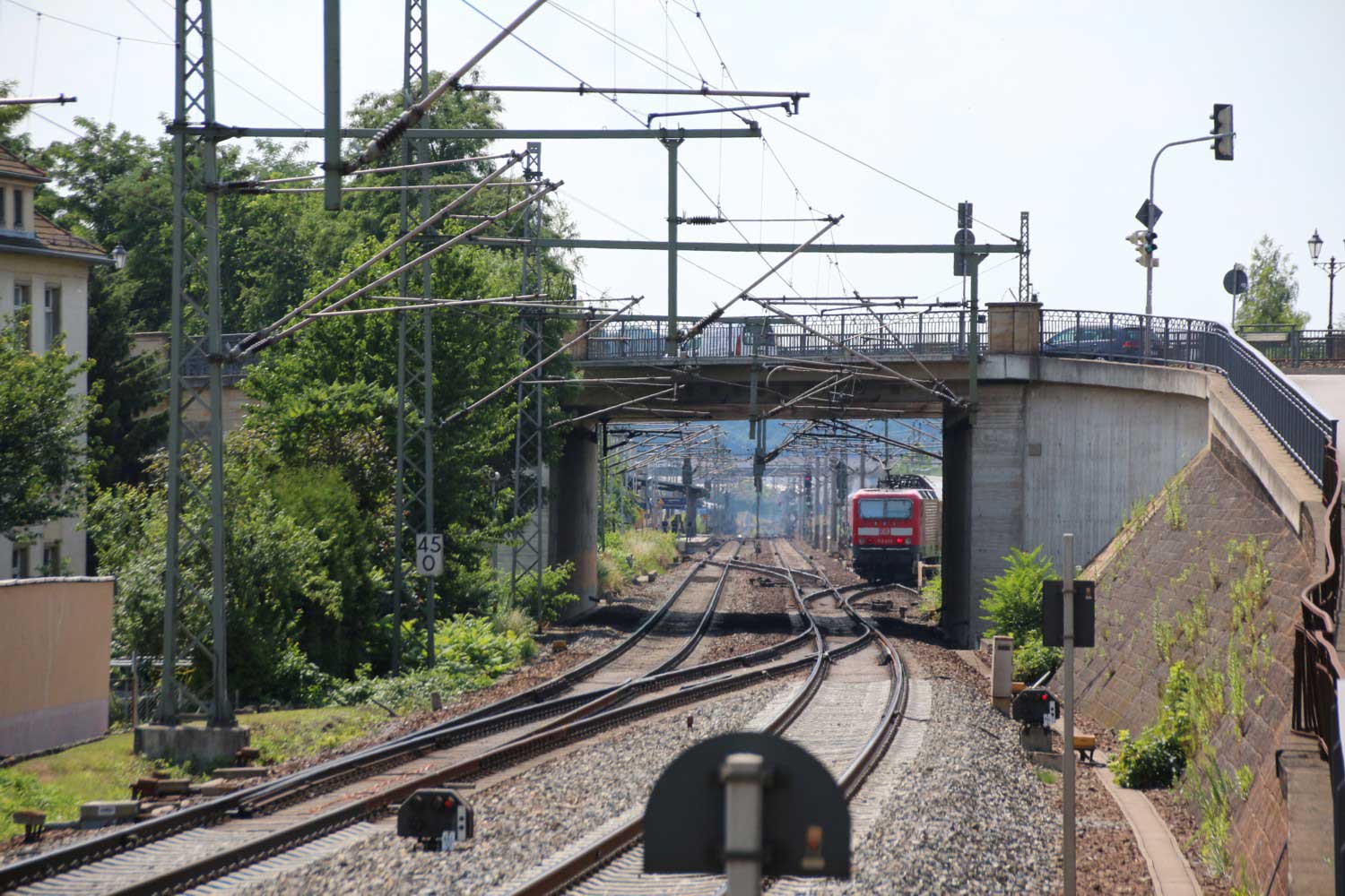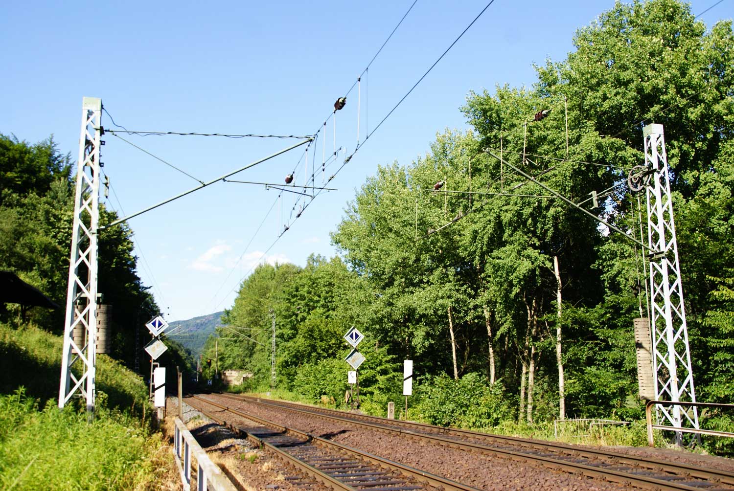 Die beiden anderen Gleise nach rechts gehören zur Strecke