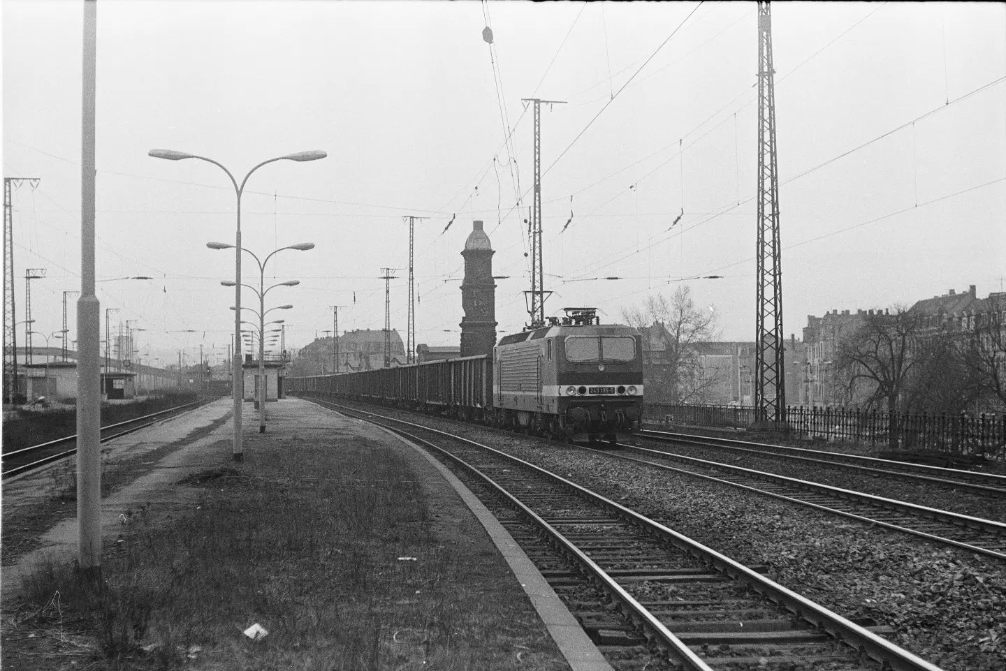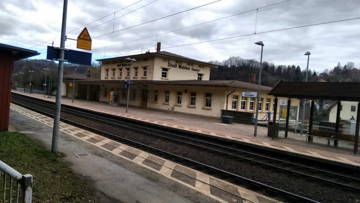 Im Hintergrund der S-Bahnhof Dresden Freiberger Straße an der Strecke