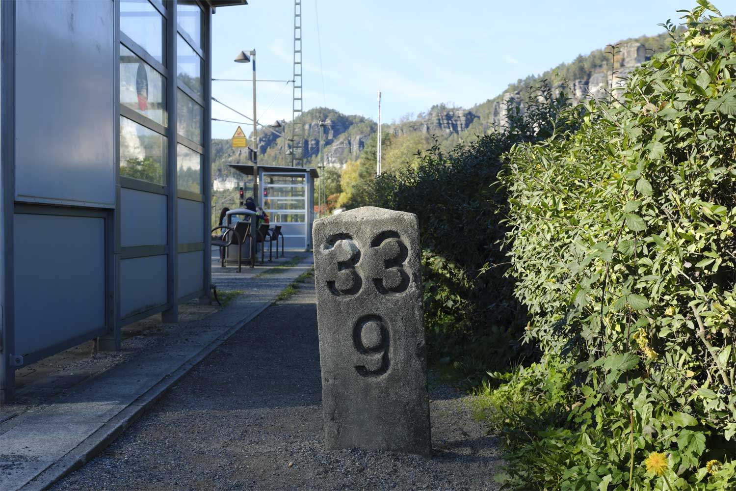 Bad Schandau | 22,76 | km 64,19 der Strecke Bautzen -0,36 - Wilthen 13,99 - Neukirch (Laus) West 23,37 - Neustadt (Sa) 36,22 - Sebnitz (Sa) 48,77 - Bad Schandau 64,19 (BS) |