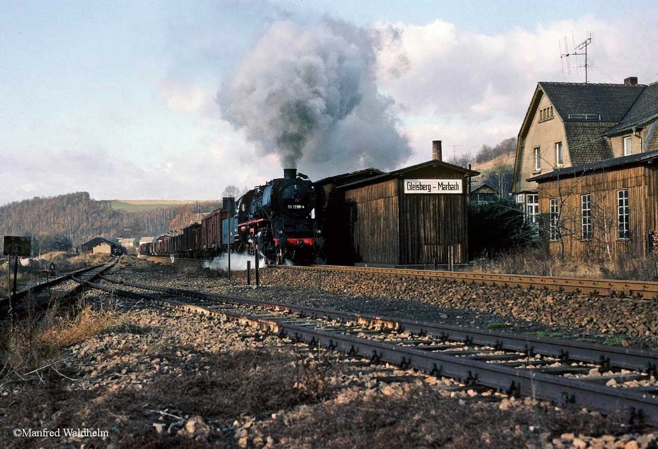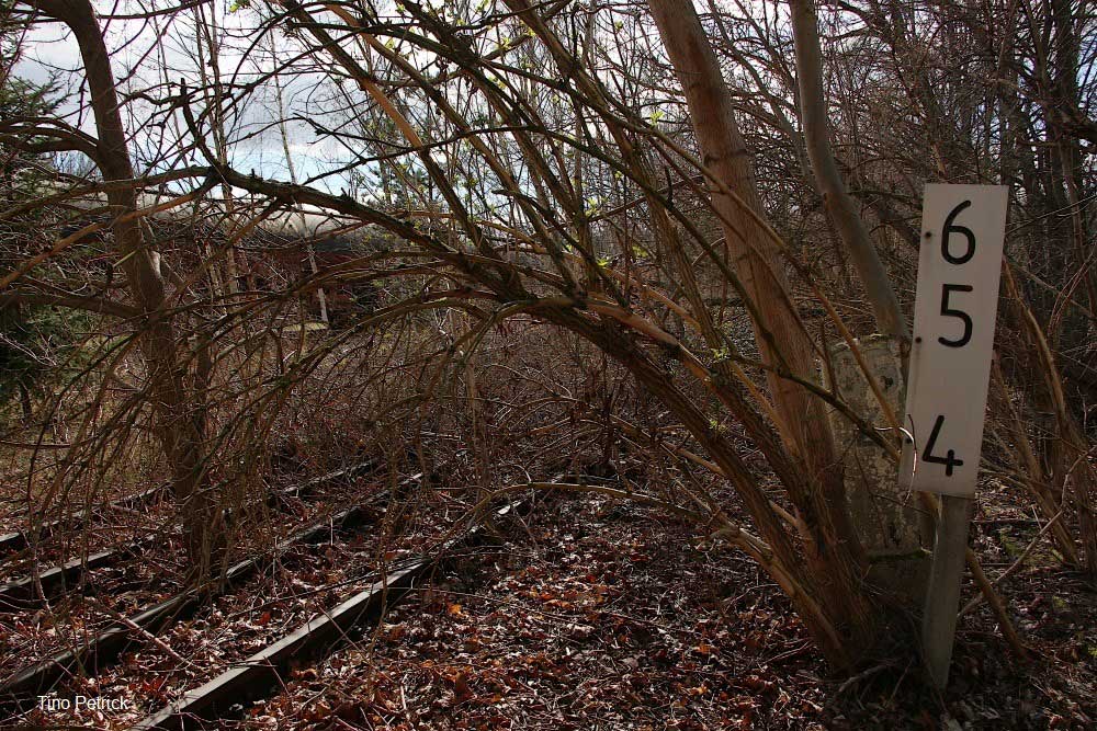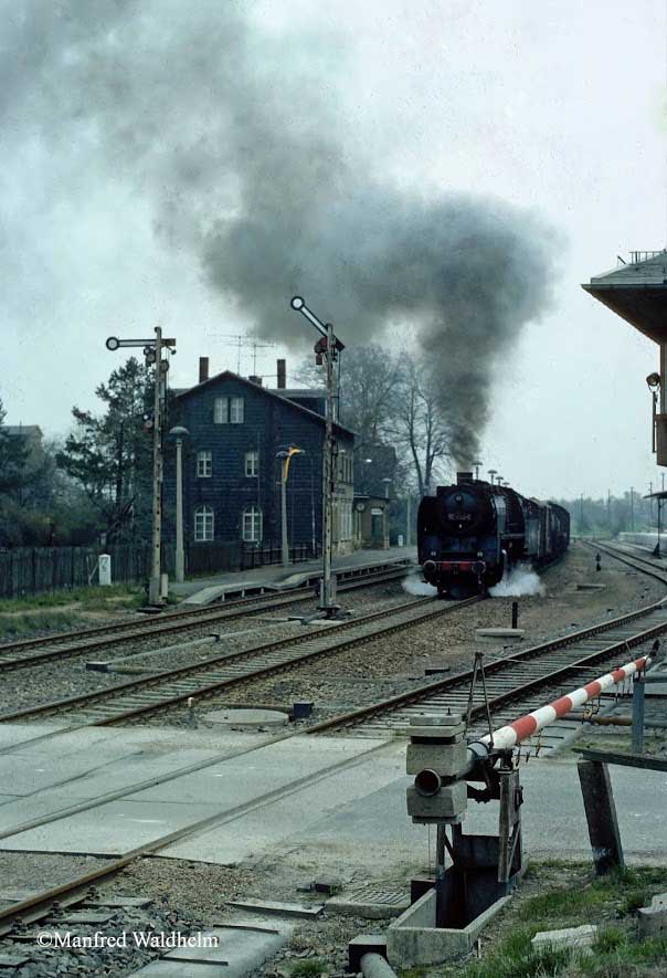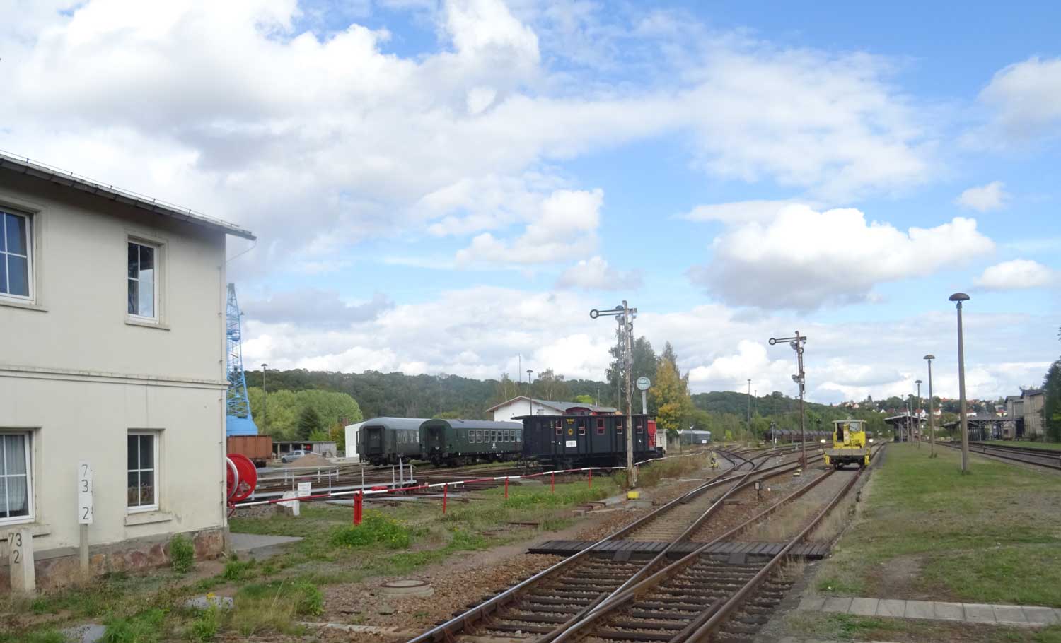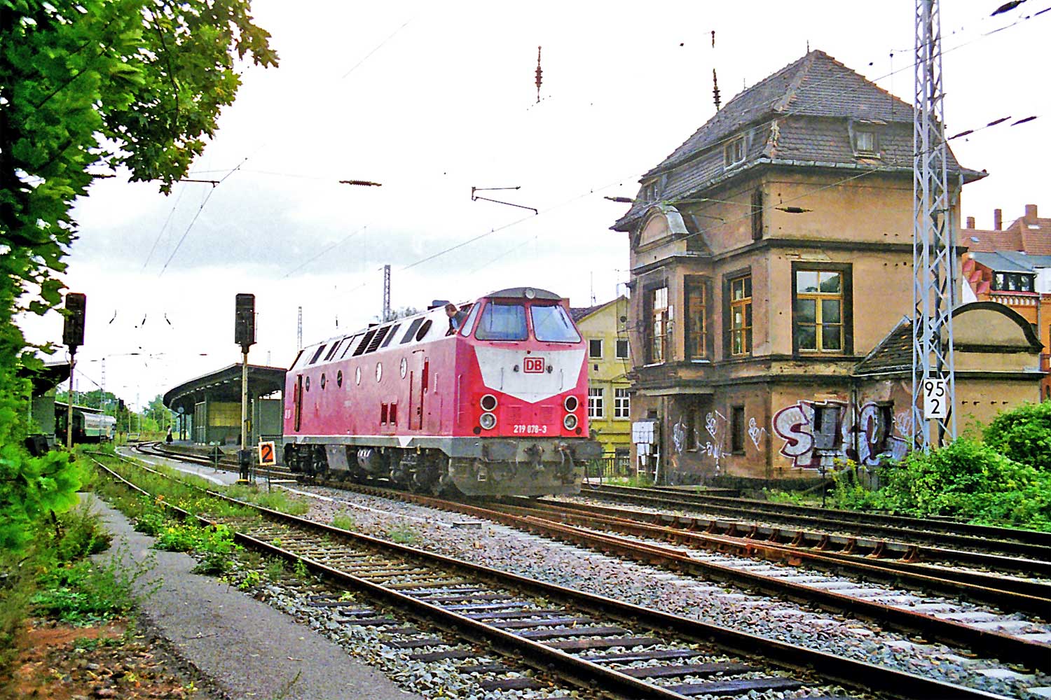 Man beachte auch die schiefstehende Lampe vor dem Bahnhofsgebäude.