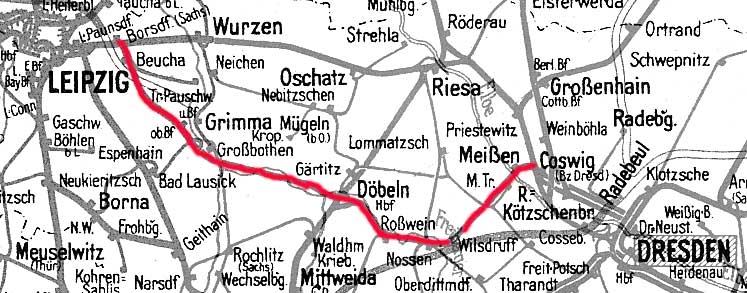Borsdorf (Sachs) 0,01 - Döbeln Hbf 54,42 - Nossen 73,41 - Coswig, Abzw B 102,50