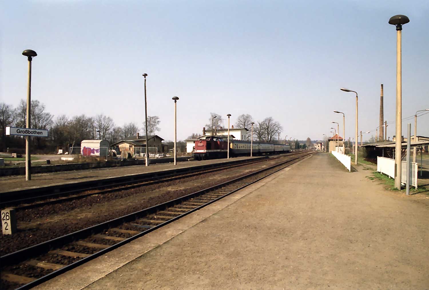 Großbothen | 26,24 | km 56,77 der Strecke Glauchau (Sachs) -0,50 - Rochlitz (Sachs) 39,24 - Großbothen 56,77 - Streckenunterbrechung - Wurzen 81,98 (GW) (6629) |