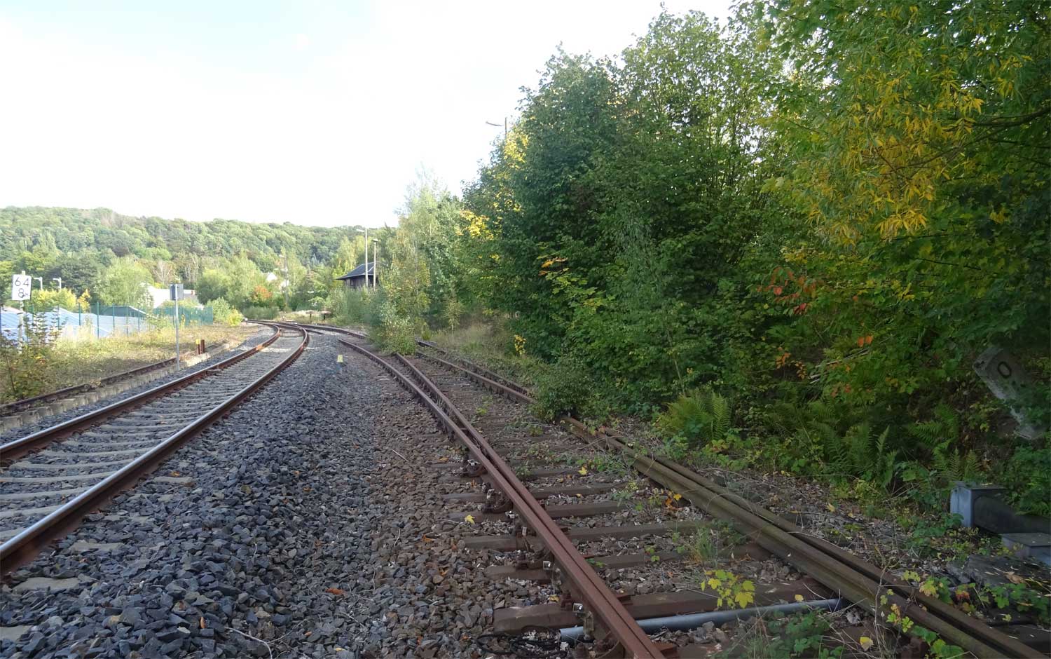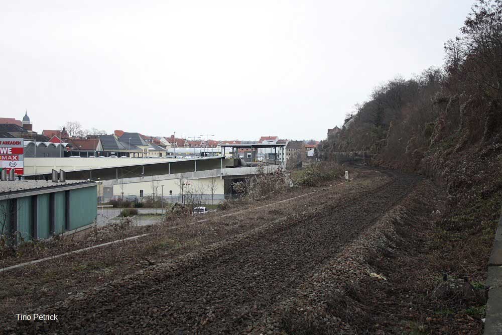 Links abgehend die Strecke Beucha 0,0 - Trebsen (Mulde) 16,75