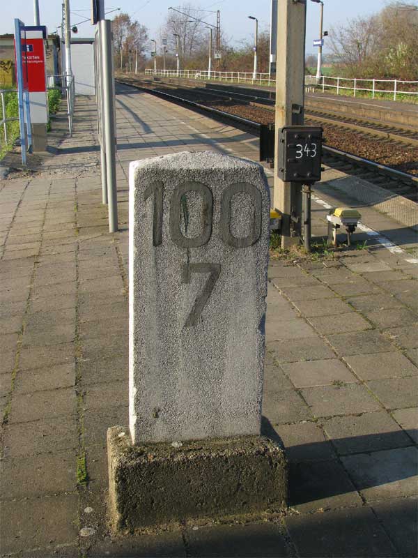 Borsdorf (Sachs) | 0,01 | km 11,45 der Strecke Leipzig Hbf 0,15 - Riesa 65,87 - Coswig 101,93 - Dresden Neustadt 115,94 (LD) |