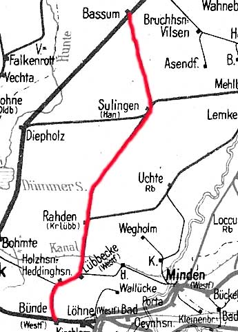 Bünde (Westf) 0,0 - Lübbecke (Westf) 18,53 - Rahden (Kr Lübbecke) 33,00 - Sulingen (Han) 66,38 - Bassum 86,82