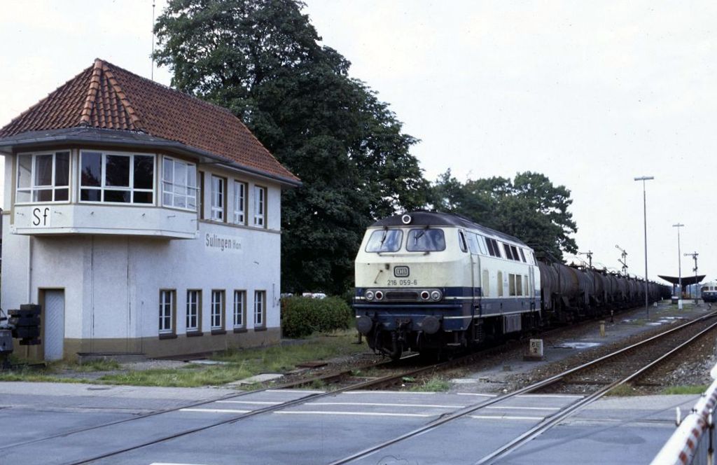 Sulingen (Han) | 66,38 | km 28,93 der Strecke Abzw. Lohe 0,0 - Sulingen (Han) 28,93 - Diepholz 61,45 |