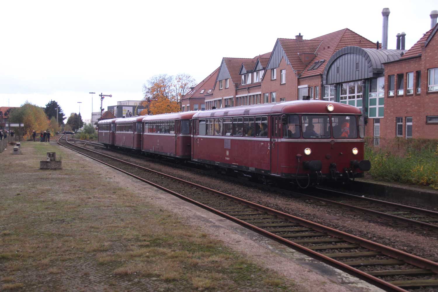 Lübbecke (Westf) | 18,53 | km 27,9 der Strecke (Minden Bf -1,2) - Minden Stadt 0,0 - Uchte 28,4/Lübbecke (Westf) 27,9/Kleinenbremen 13,7/Wegholm 15,1 [Mindener Kreisbahnen nach Kleinenbremen, Wegholm, Uchte und Lübbecke (Westf)] Spurweite 1000 mm; 1924 - 1957 Umbau auf Normalspur |
