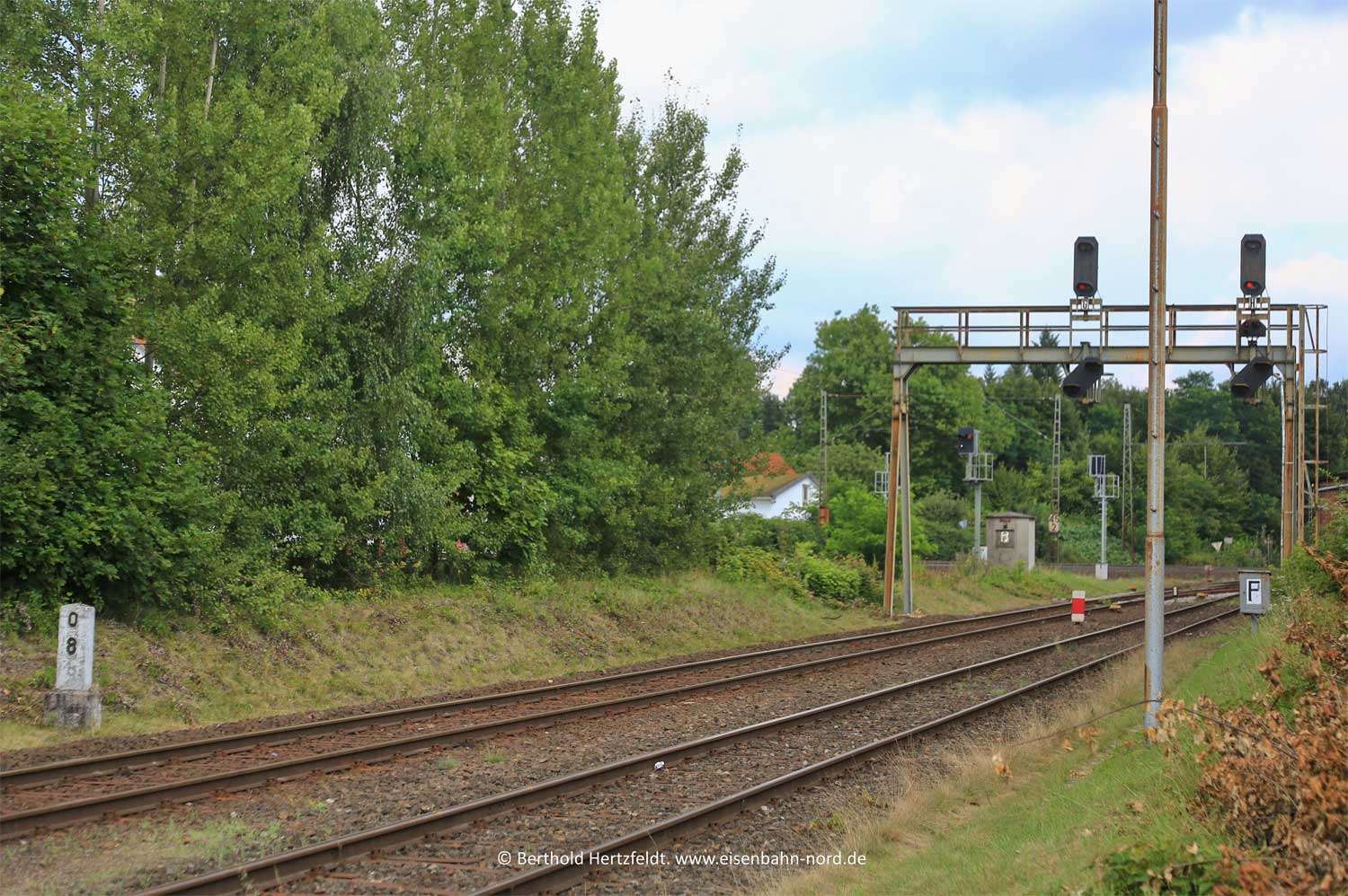 km 57,5 der Strecke Lüneburg Süd 0,0 - Hützel (Lüneb) 36,4 - Soltau (Han) Süd 57,1 - [Soltau (Han) 57,5] [Osthannoverschen Eisenbahnen (OHE)] |