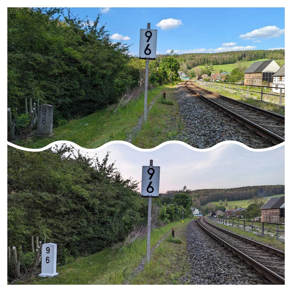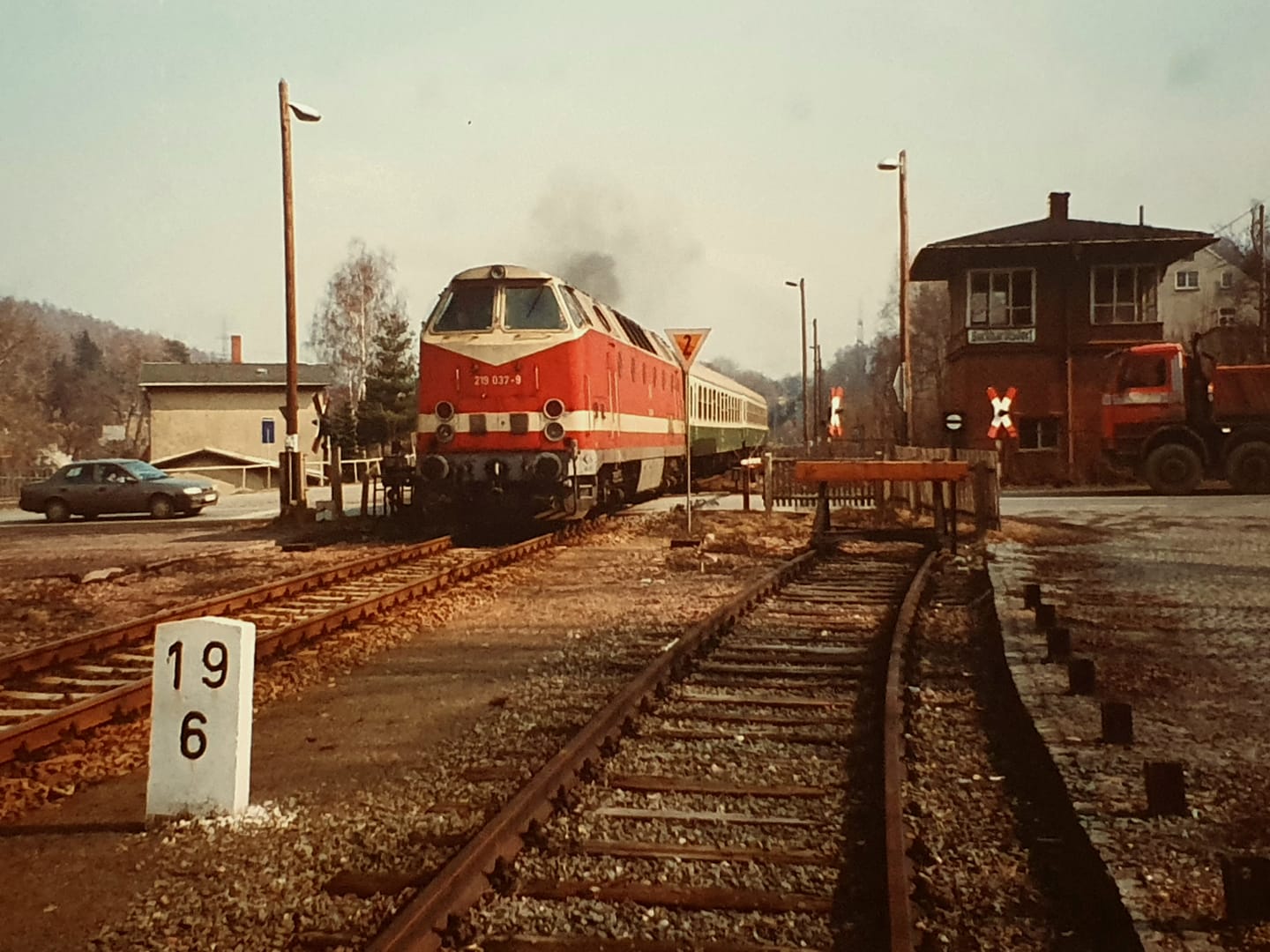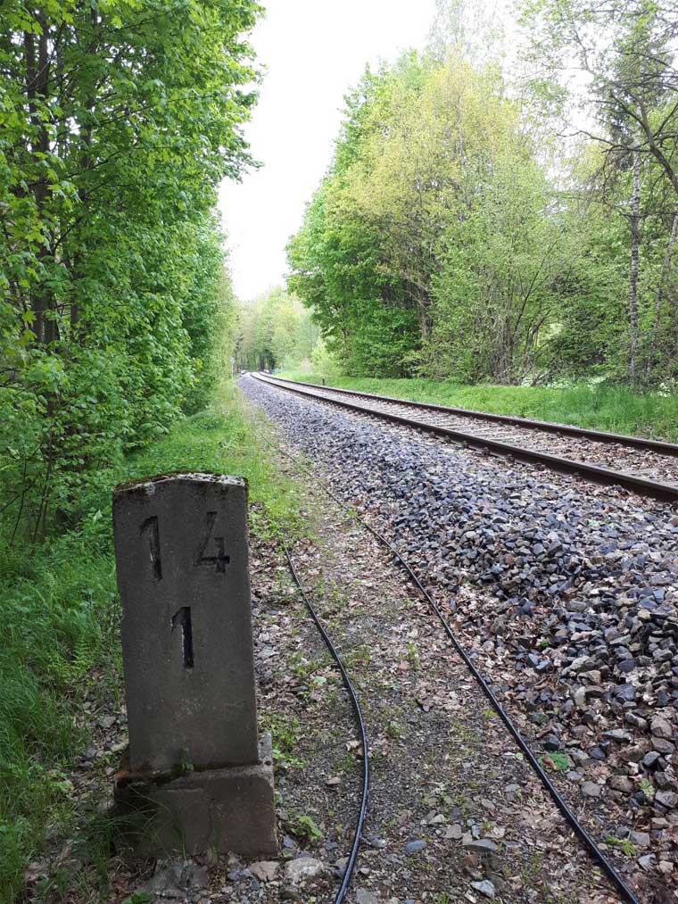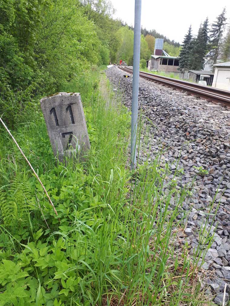 km 25,69 der Strecke Aš (Asch) 0,0 - Grenze Tschechoslowakei/Deutschland 16,870 - Arnsgrün 18,54 - Adorf (Vogtl) 25,69 (AA) |