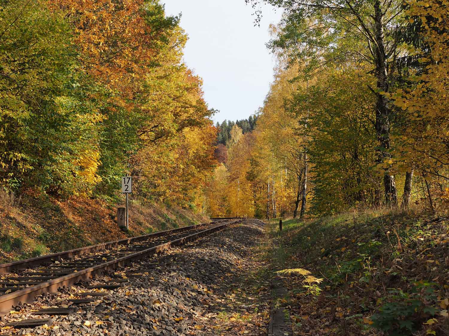 km 17,2 (Stein und Tafel) zwischen Dittersdorf (bei Chemnitz) und Kemtau - Blick Richtung Chemnitz