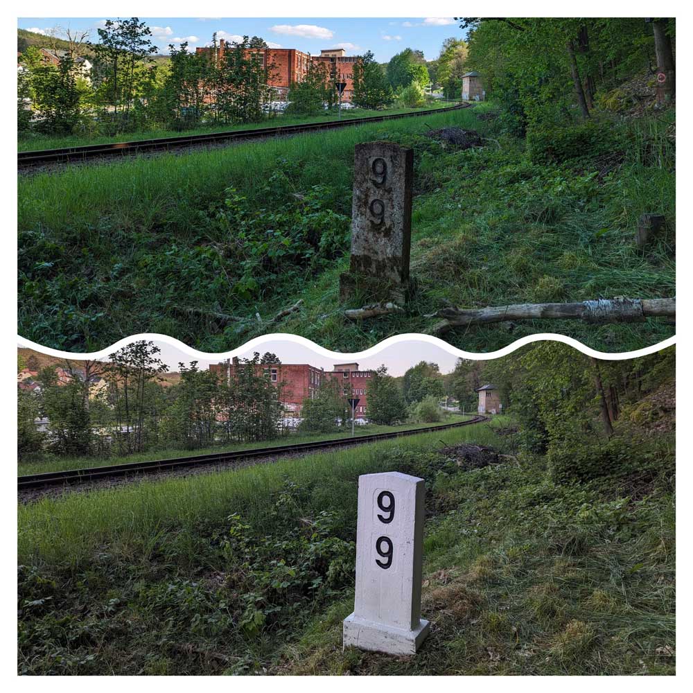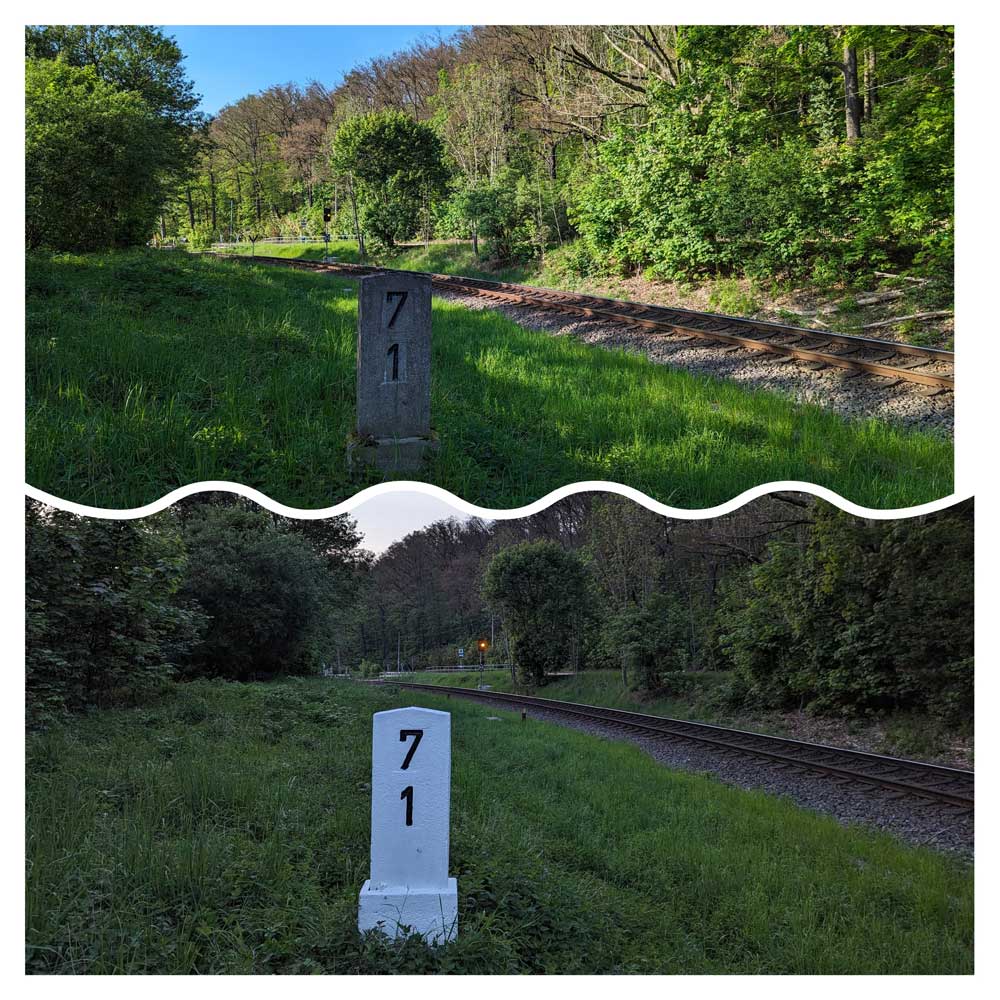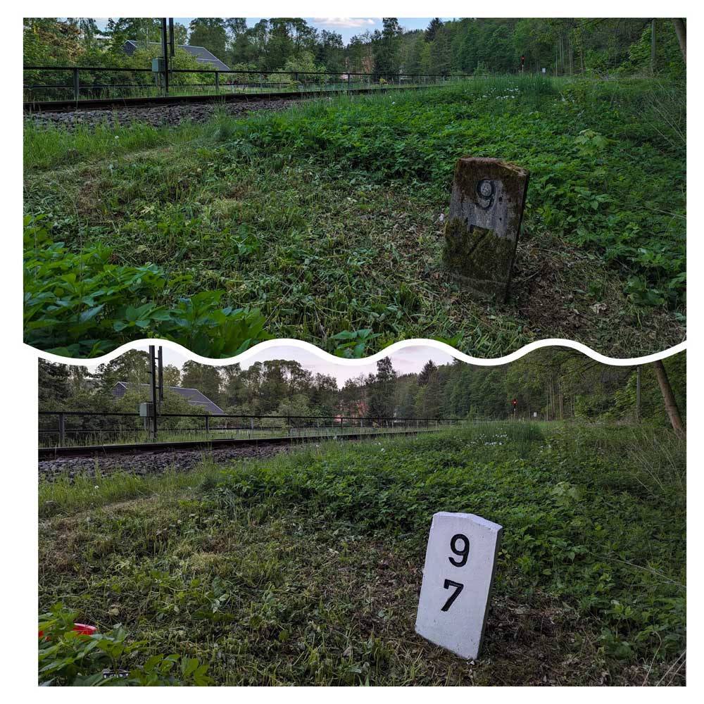 km 37,96 der Strecke Zwönitz 0,02 - Stollberg (Sachs) 16,59 - Karl-Marx-Stadt Süd 37,96 (ZC) | ||