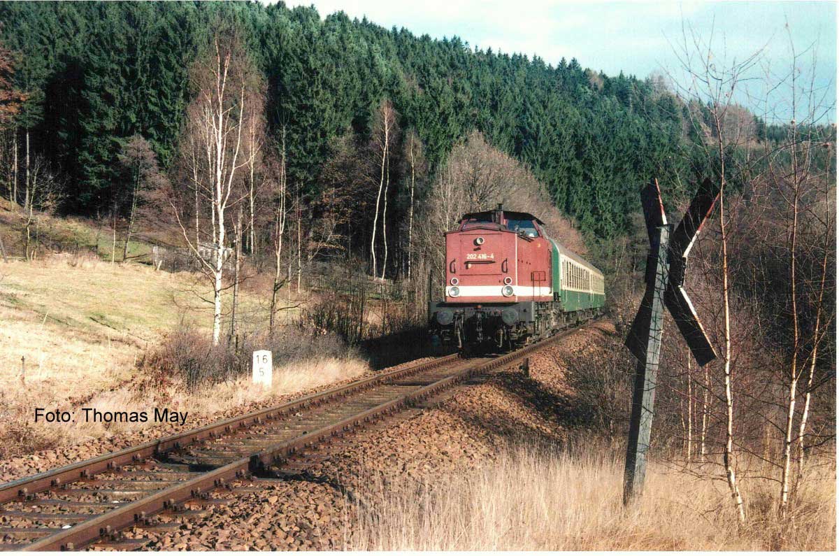 Adorf (Vogtl) | 114,47 | km 33,14 der Strecke Plauen (Vogtl) ob Bf 0,40 - Adorf (Vogtl) 33,137 - Grenze Deutschland/Tschechoslowakei (mehrmaliger Wechsel) - Cheb (Eger) 74,420 (PE) |