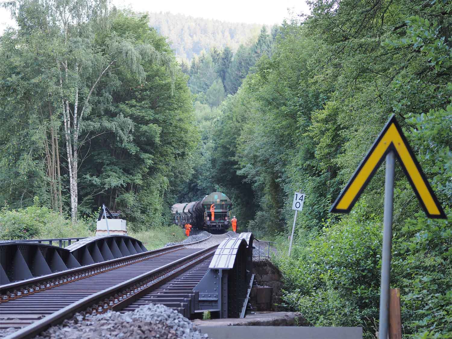 km 14,1 und km 14,2 zwischen Dittersdorf (bei Chemnitz) und Kemtau - Blick Richtung Aue
