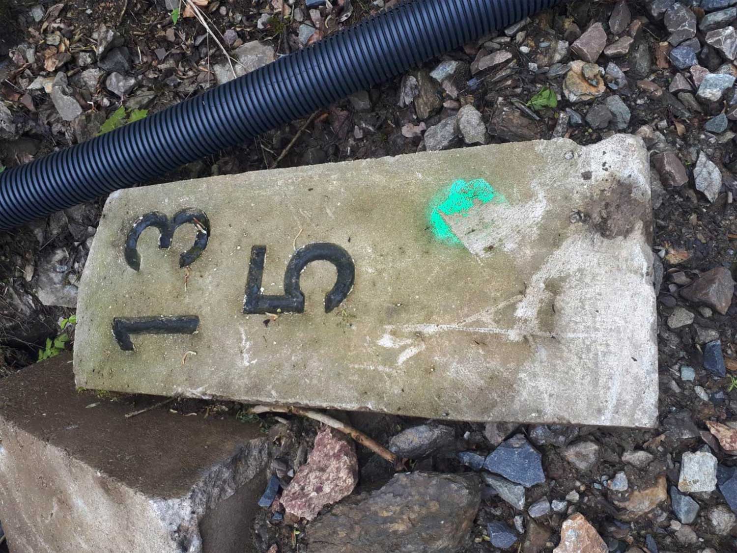 Der Kilometerstein wurde durch Unbekannte frisch gestrichen