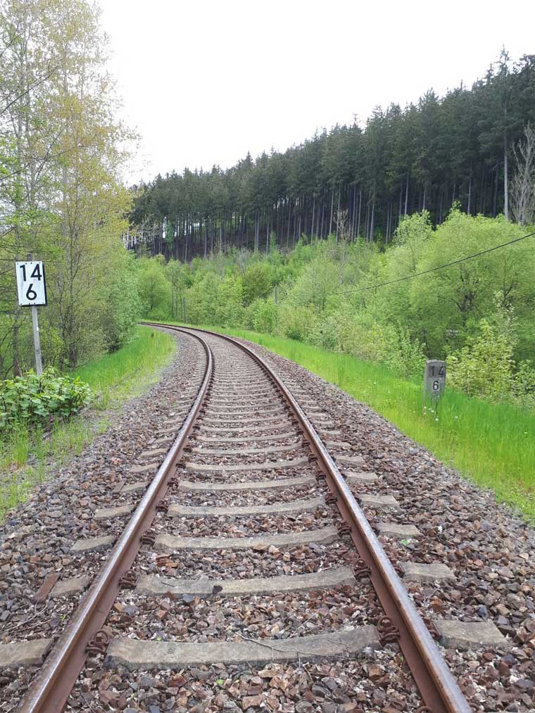 km 15,7 und km 15,8 zwischen Dittersdorf (bei Chemnitz) und Kemtau - Blick Richtung Aue