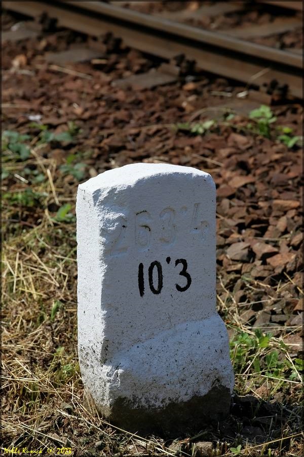 Der Stein zeigte ursprünglich km 263,4 und stammt von einer anderen Strecke in Tschechien.