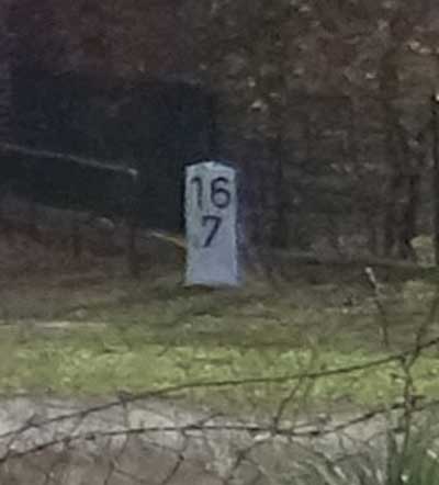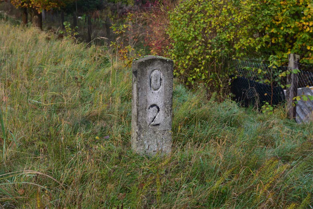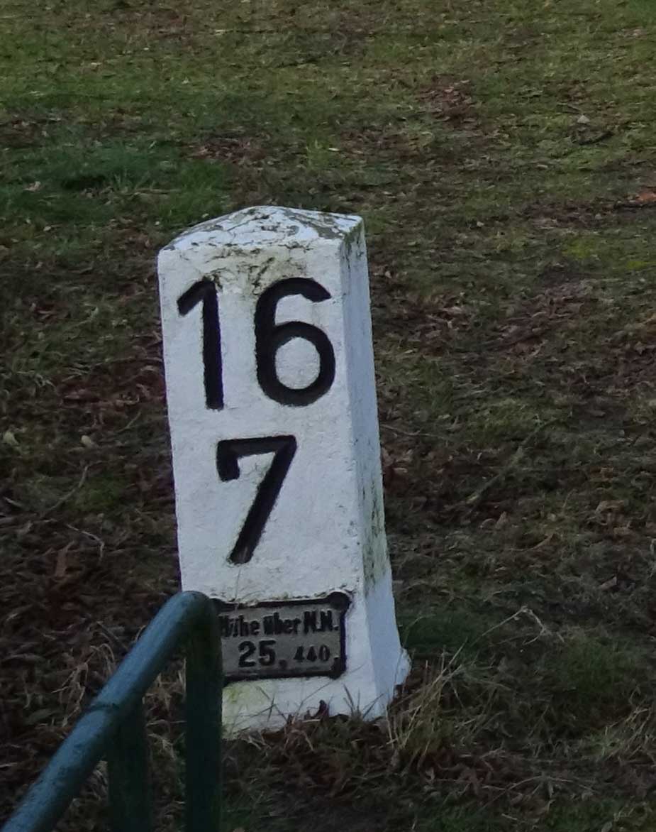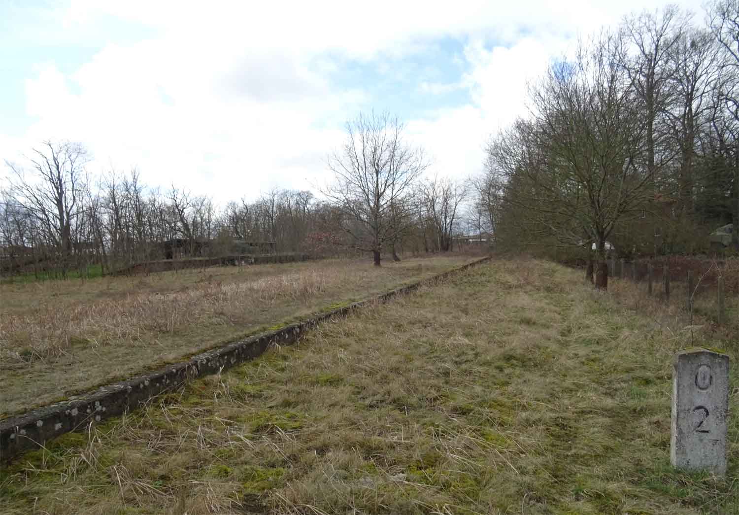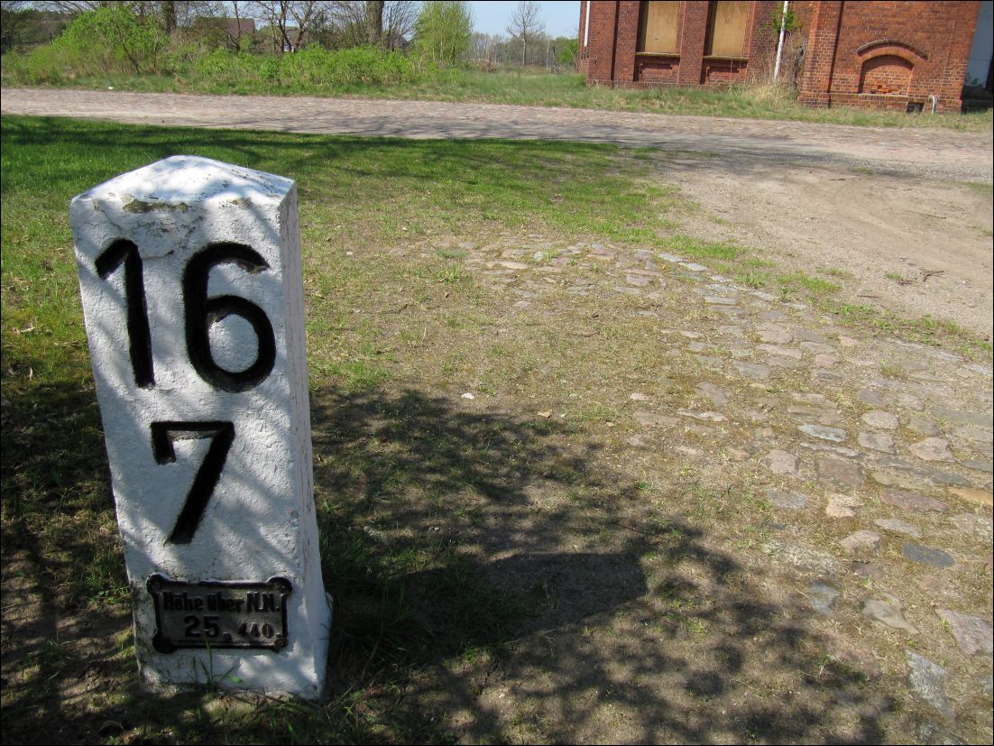 km 84,5 (Stein im Vordergrund) und km 84,6 (Tafel) zwischen Bad Kleinen und Losten