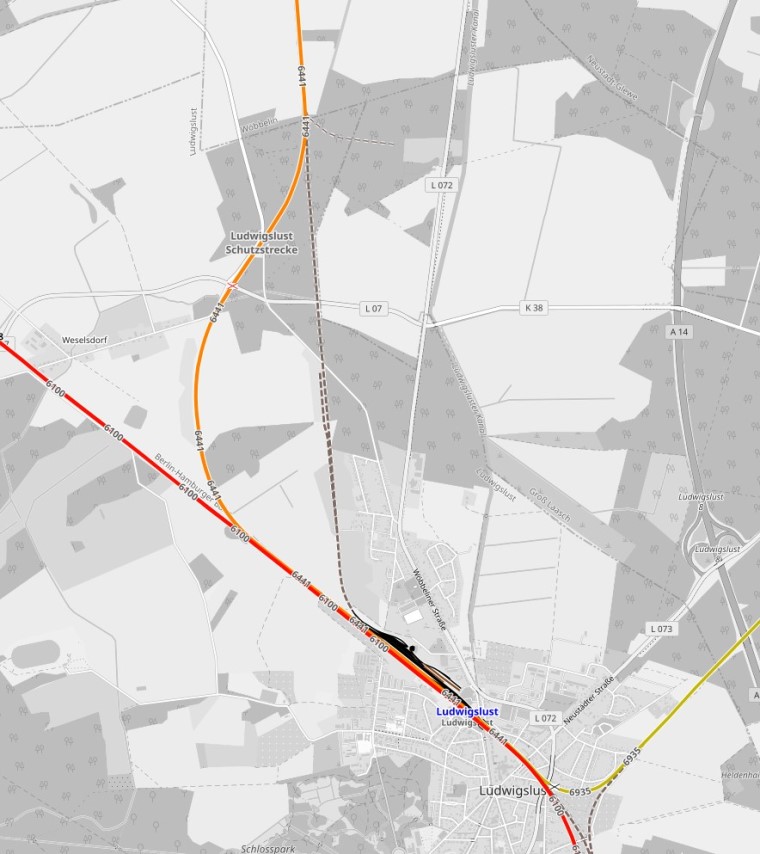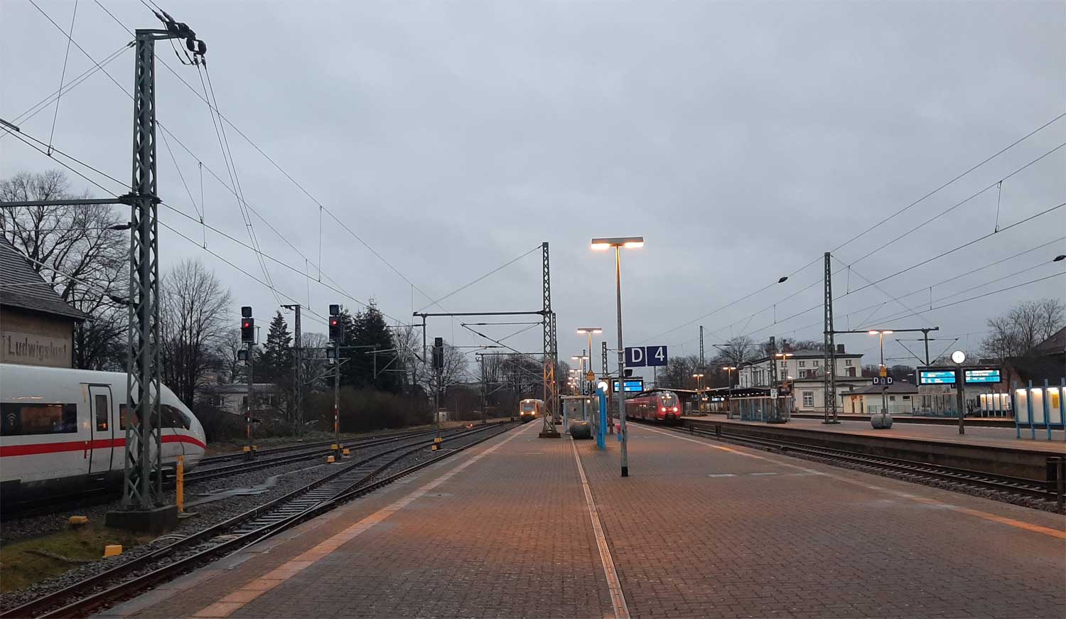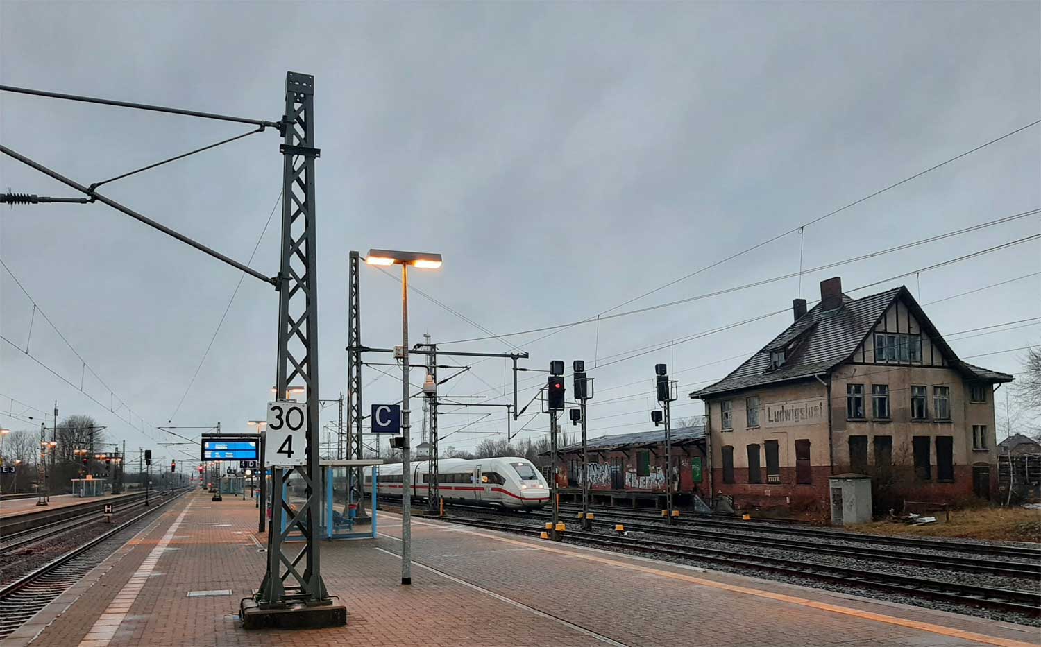 Ludwigslust 30,28 km 170,76 der Strecke Berlin Hamburger Bf (Lehrter Bf) 0,0 - Wittenberge 126,62 - Schwarzenbek 279,23 - Hamburg-Altona 293,14