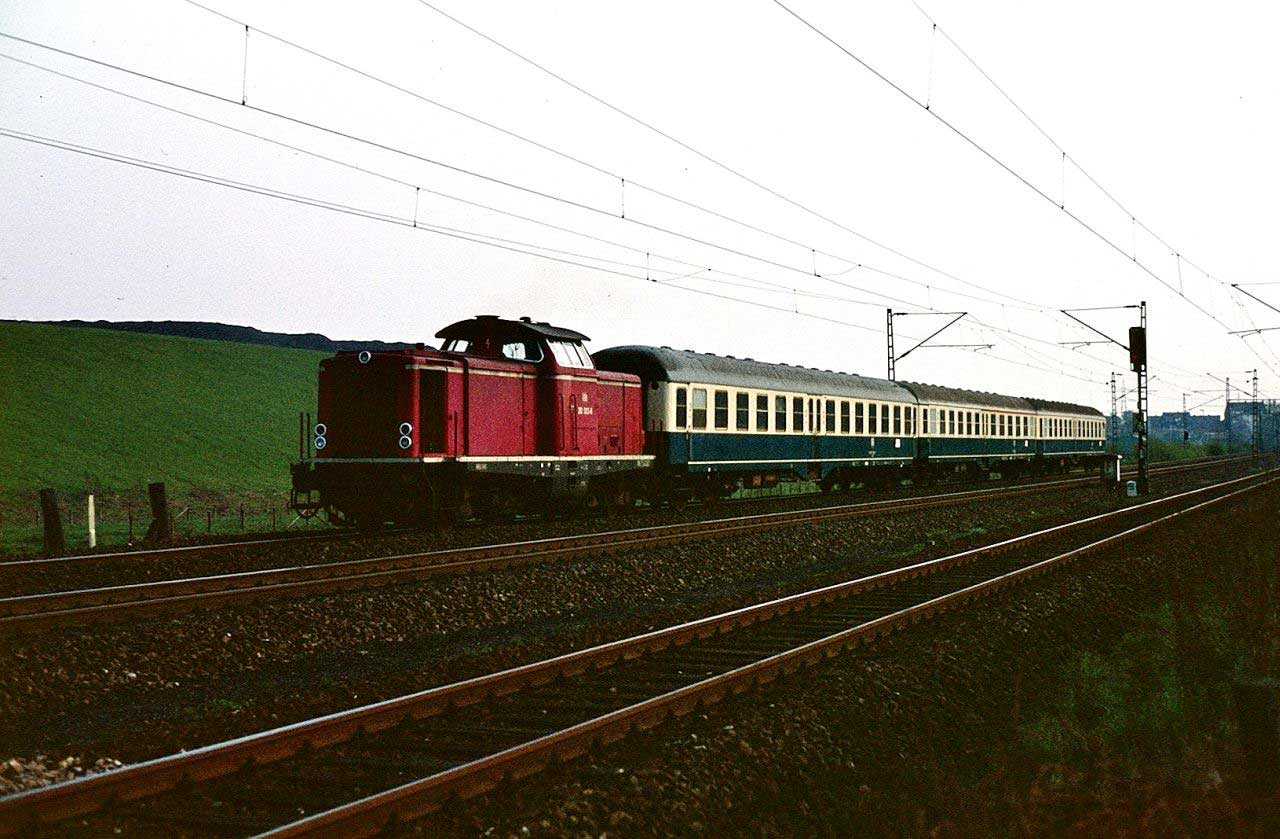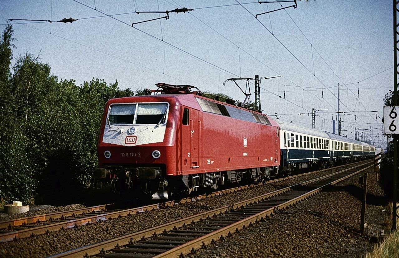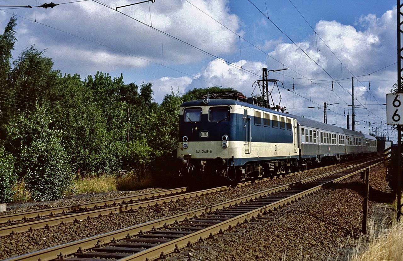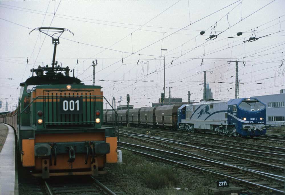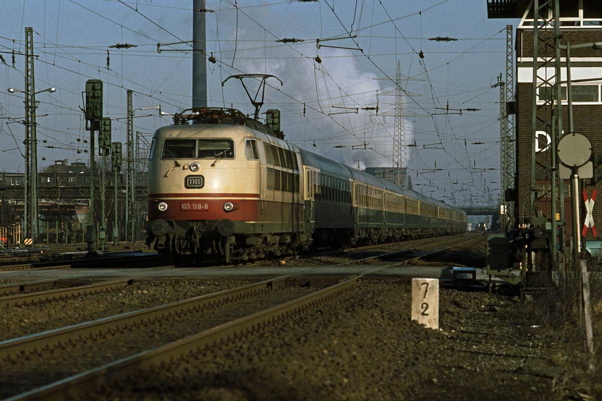 km 0,2 in Dortmund Hbf - Henschel / BBC Lok E1200, besser bekannt als Ragodil mit Zug auf dem Weg nach Dortmund-Derne