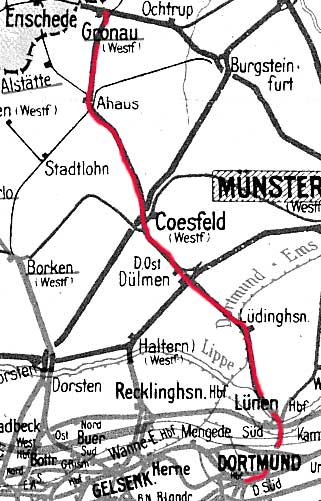 Dortmund Hbf 0,0 - Lünen Hbf 13,85 - Dülmen 44,63 - Coesfeld (Westf) 61,00 - Gronau (Westf) 95,95