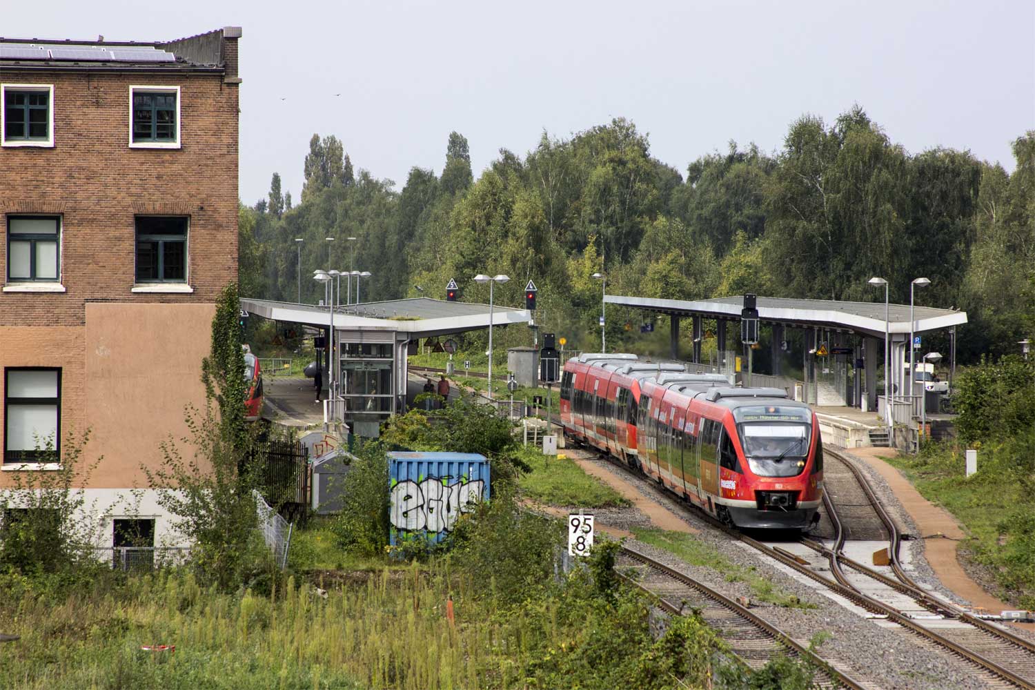 Gronau (Westf) | 95,95 | km 56,09 der Strecke Münster (Westf) Hbf 0,0 - Gronau (Westf) 56,09 - Staatsgrenze km 59,030 = (km 59,7 - Enschede 53,5 - Hengelo 45,1 - Zutphen 0,0) |