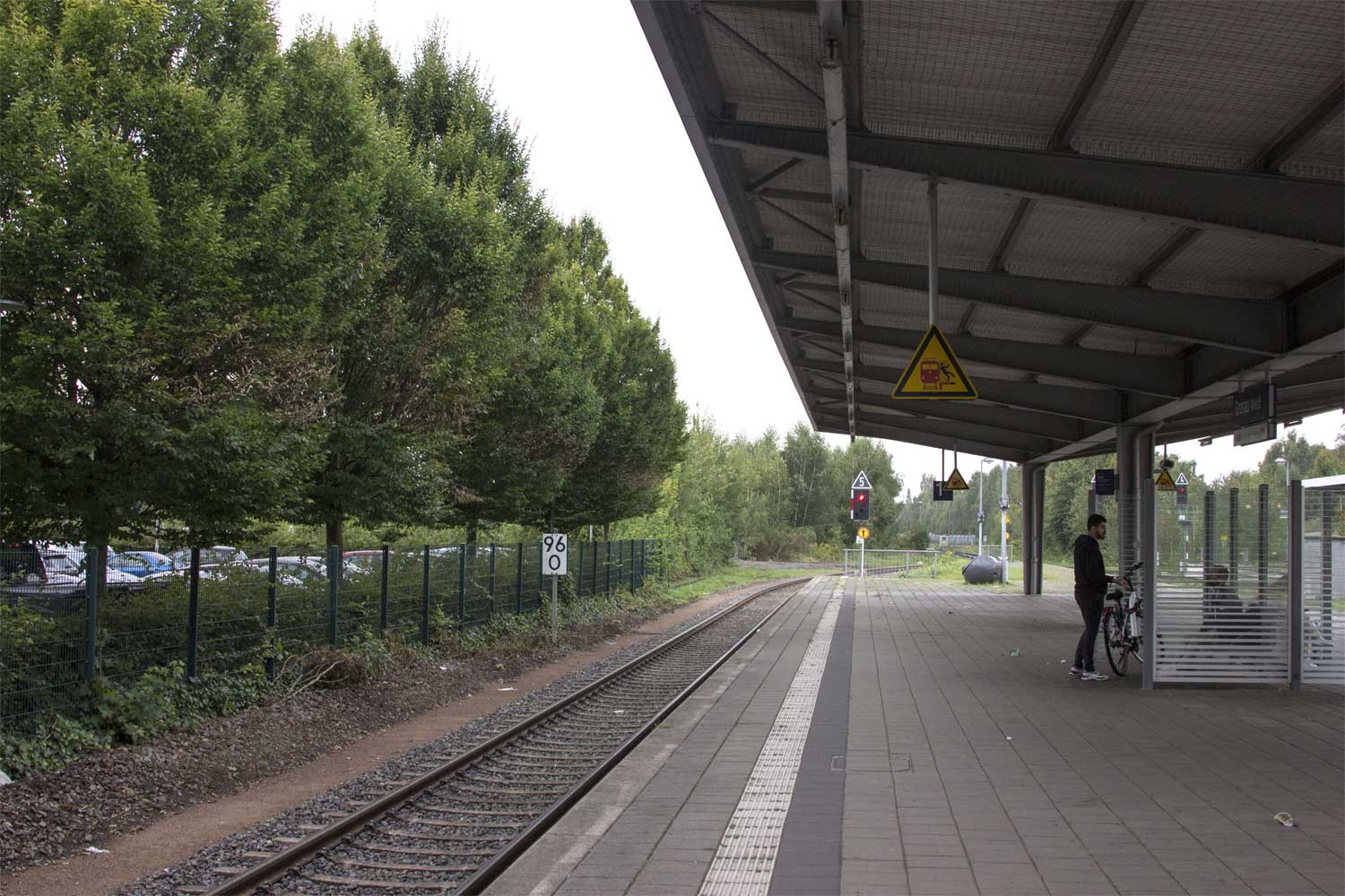 km 119,51 der Strecke Köln-Deutz 0,0 - Düsseldorf Hbf 38,22 (kommend)/39,48 (gehend) - Duisburg Hbf 63,10 - Oberhausen Hbf 70,71 - Wanne-Eickel Hbf 94,53 - Dortmund Hbf 119,51 - Hamm Pbf 150,73 | ||