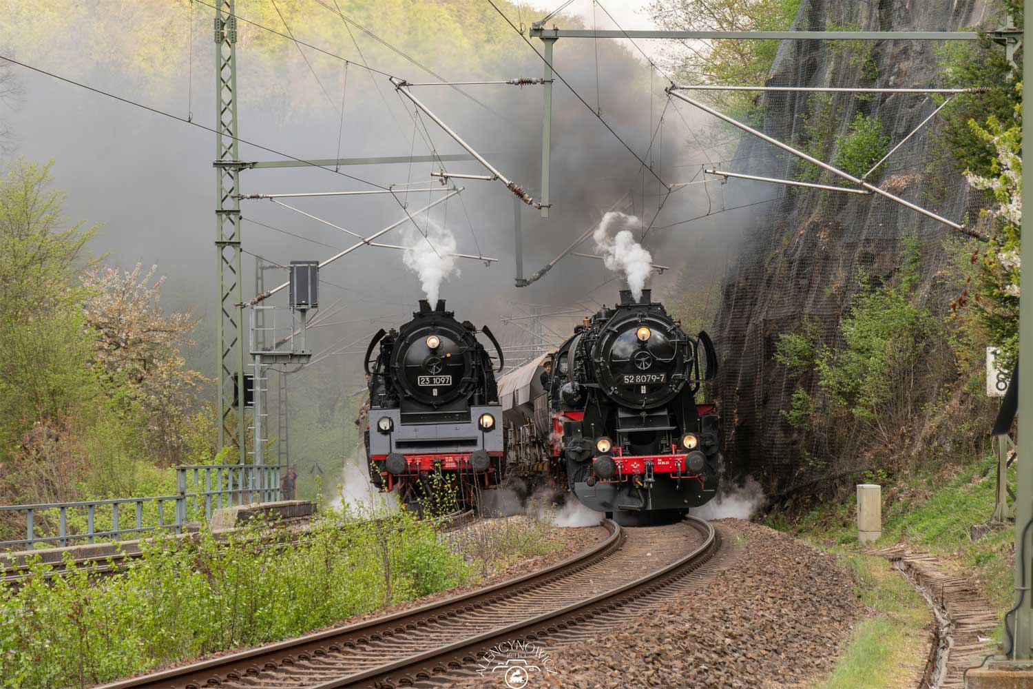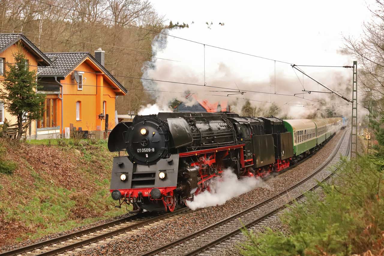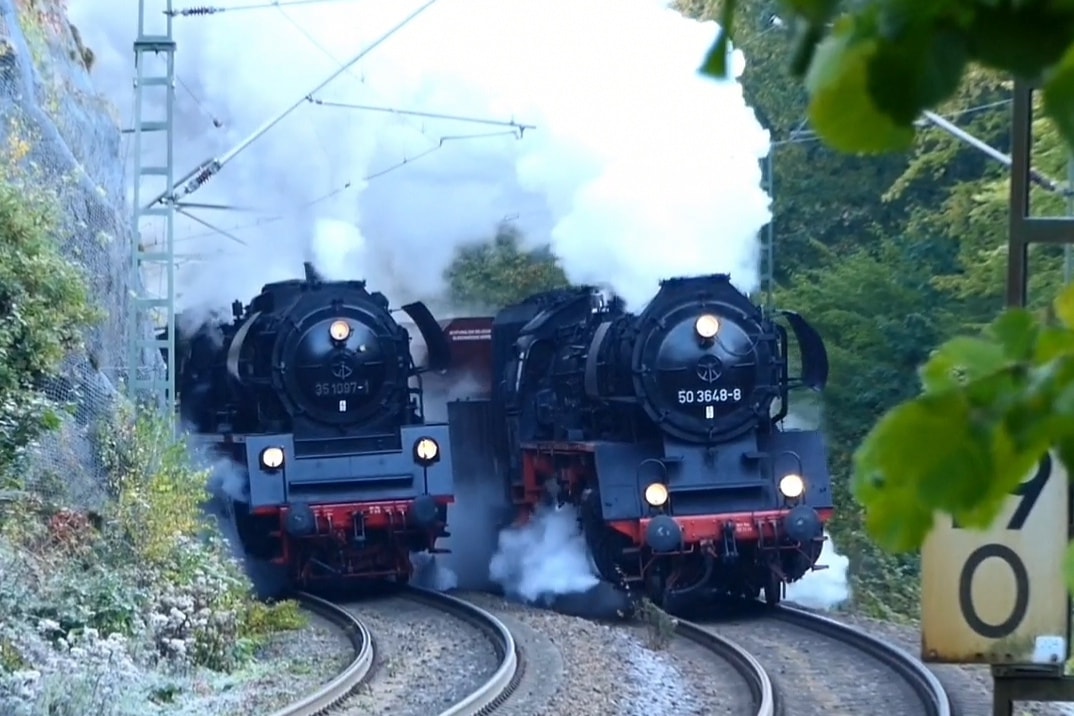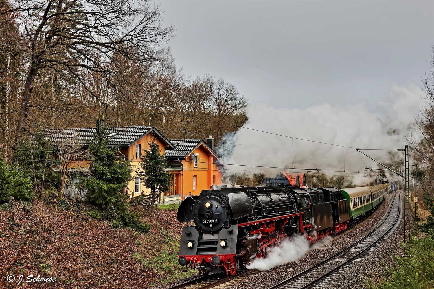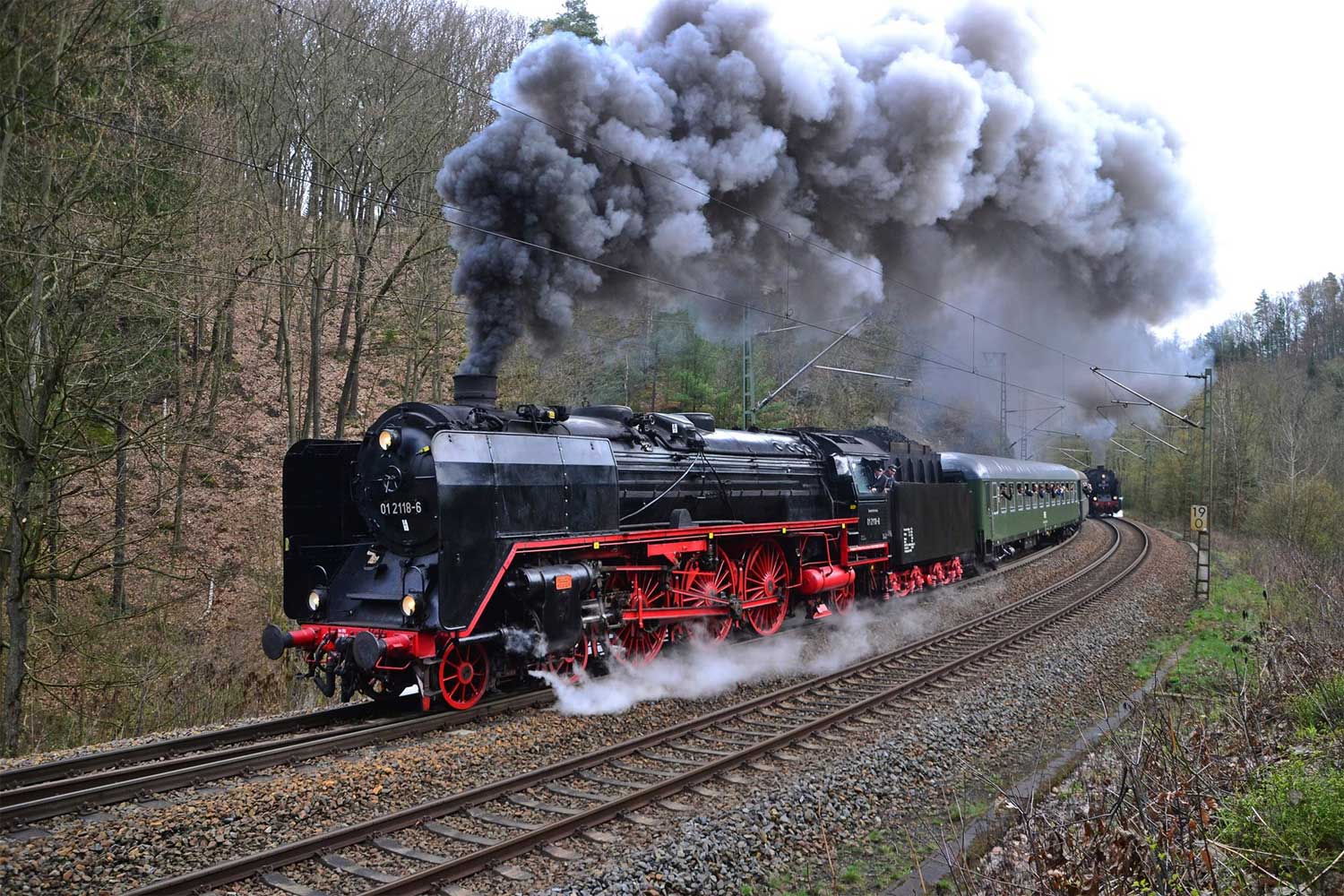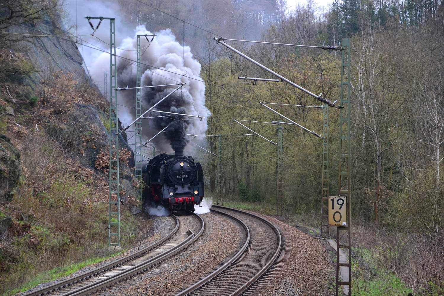 km 16,2 zwischen Tharandt und Edle Krone - 38 205 und 01 137 mit Sonderzug zum Tag des Eisenbahners