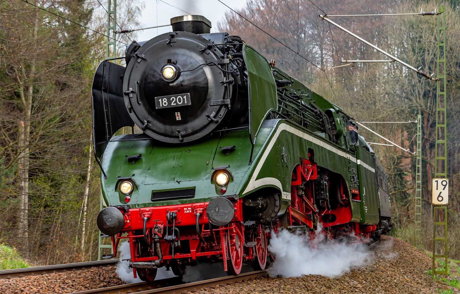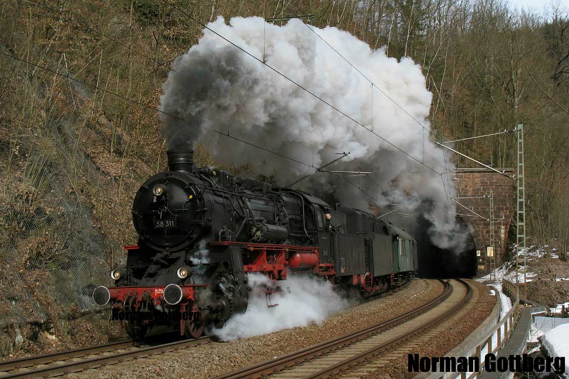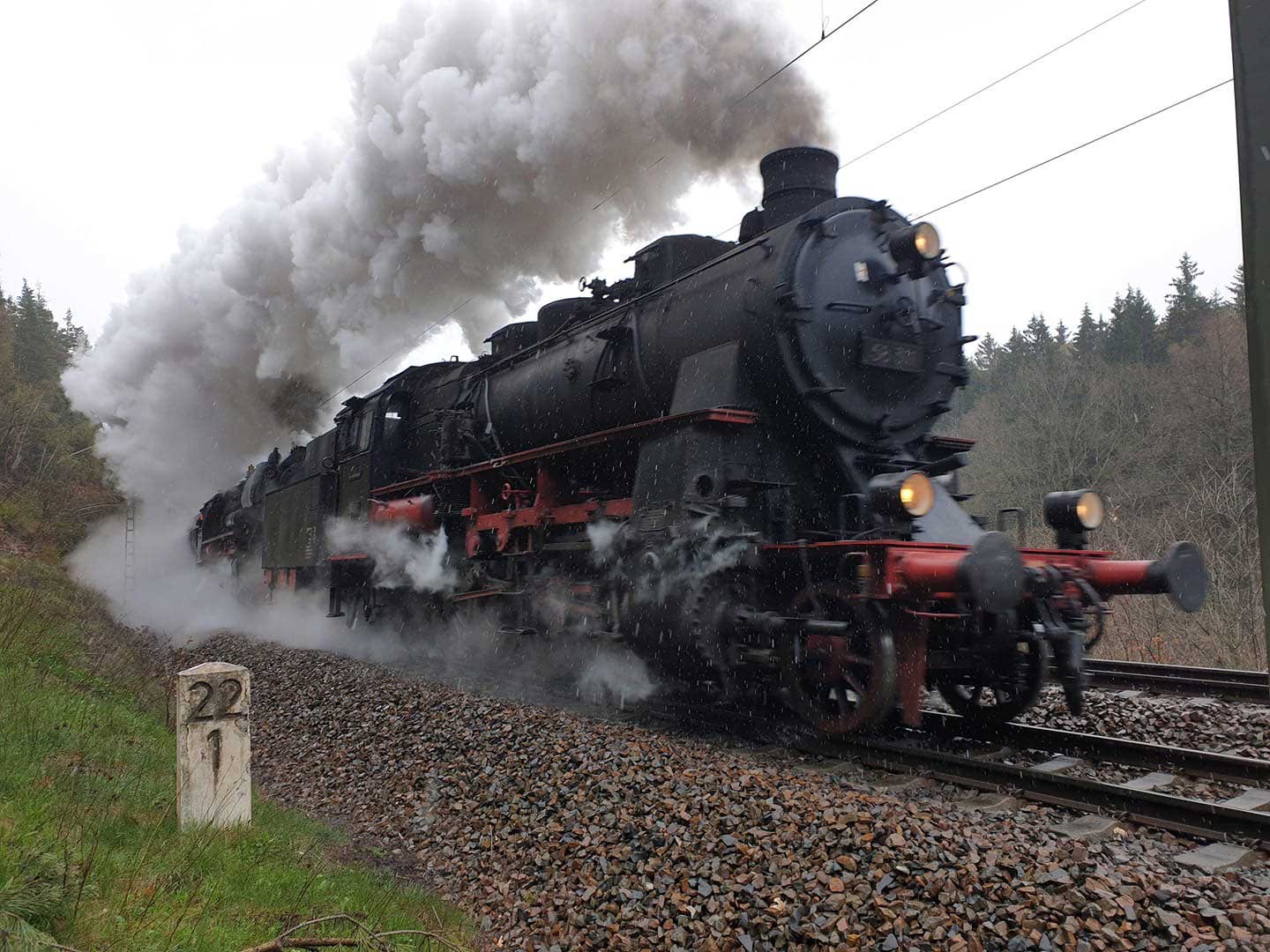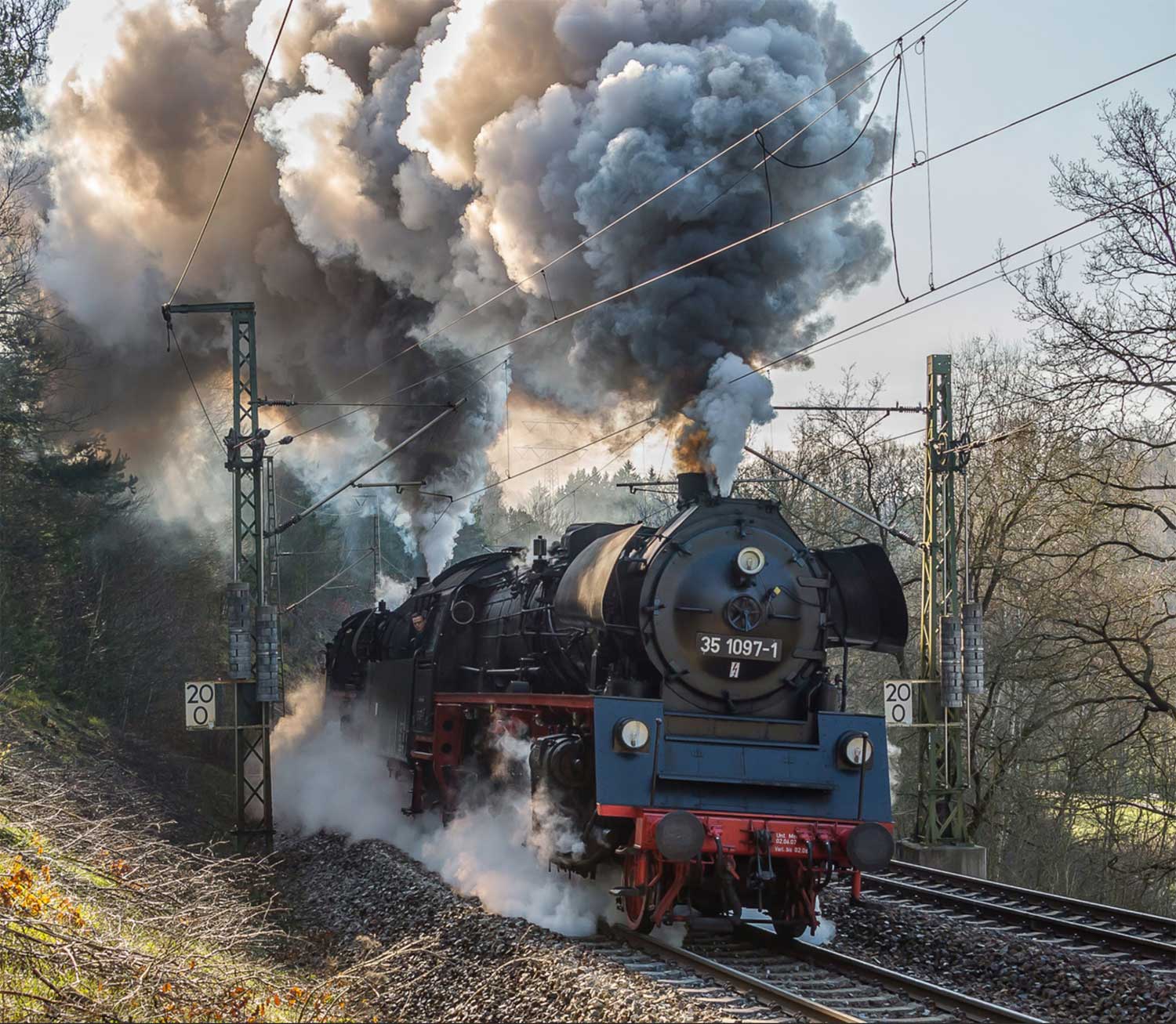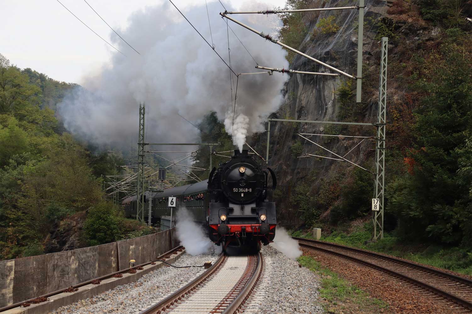 km 16,2 zwischen Tharandt und Edle Krone - 38 205 und 01 137 mit Sonderzug zum Tag des Eisenbahners