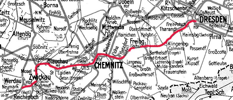 Dresden Hbf -0,048 - Chemnitz Hbf 79,73 - Zwickau Hbf 128,35 - Abzw Werdau Bogendreieck (Neumarker Spitze) 136,23 (DW)