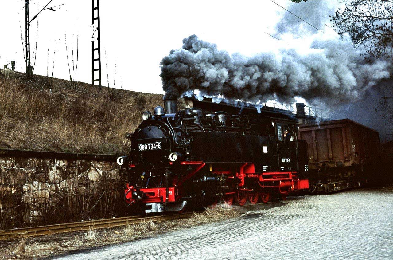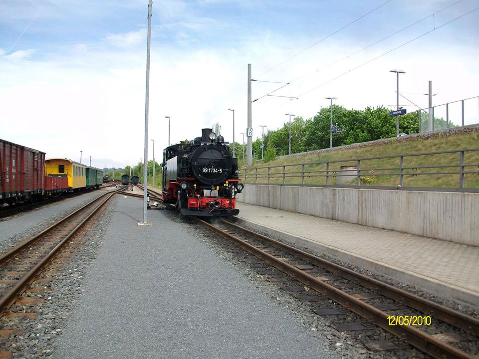 Unten die Schmalspurbahn nach Kipsdorf mit 099 734