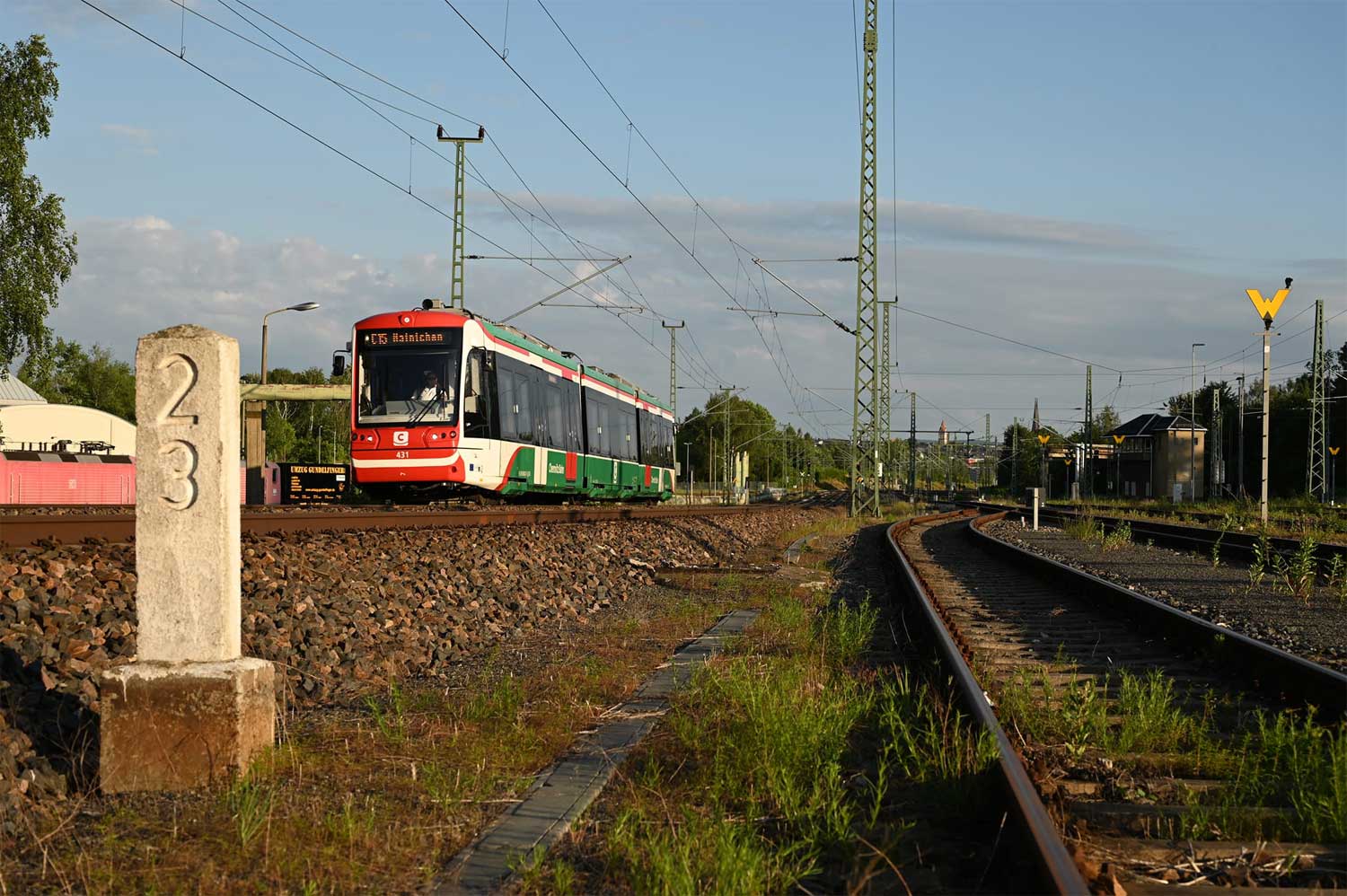 Links km 1,8 der Strecke Chemnitz Hbf 0,0 - Aue (Sachs) 50,80 - Adorf (Vogtl) 114,47 (CA)