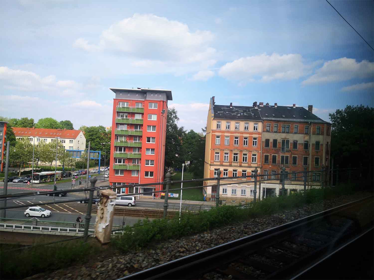 km 85,2 in Chemnitz-Schönau (früher: Wanderer Werke) - Blick Richtung Dresden