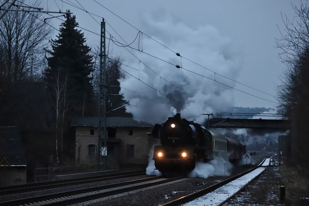 km 57,92 der Strecke Staatsgrenze Tschechei/Deutschland 0,0 - Reitzenhain 1,39 - Pockau-Lengefeld 31,23 - Flöha 57,92 (RF) | ||