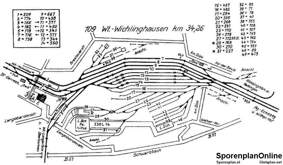 Wichlinghausen | 34,26 | km 3,30 der Strecke Wuppertal-Oberbarmen 0,0 - Wichlinghausen 3,30 |