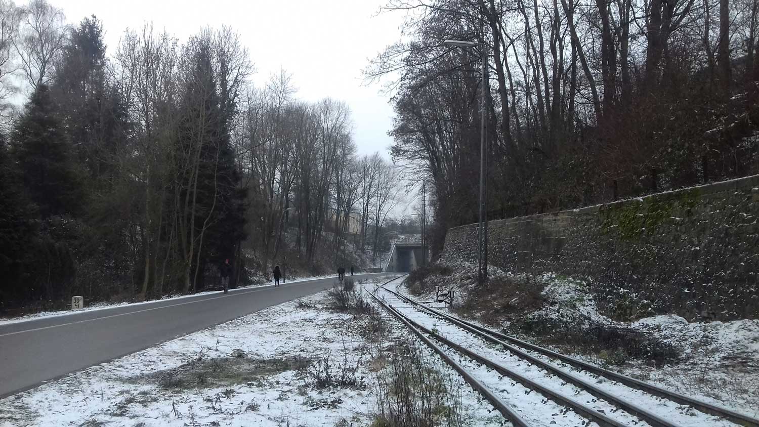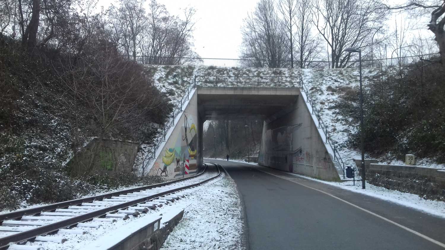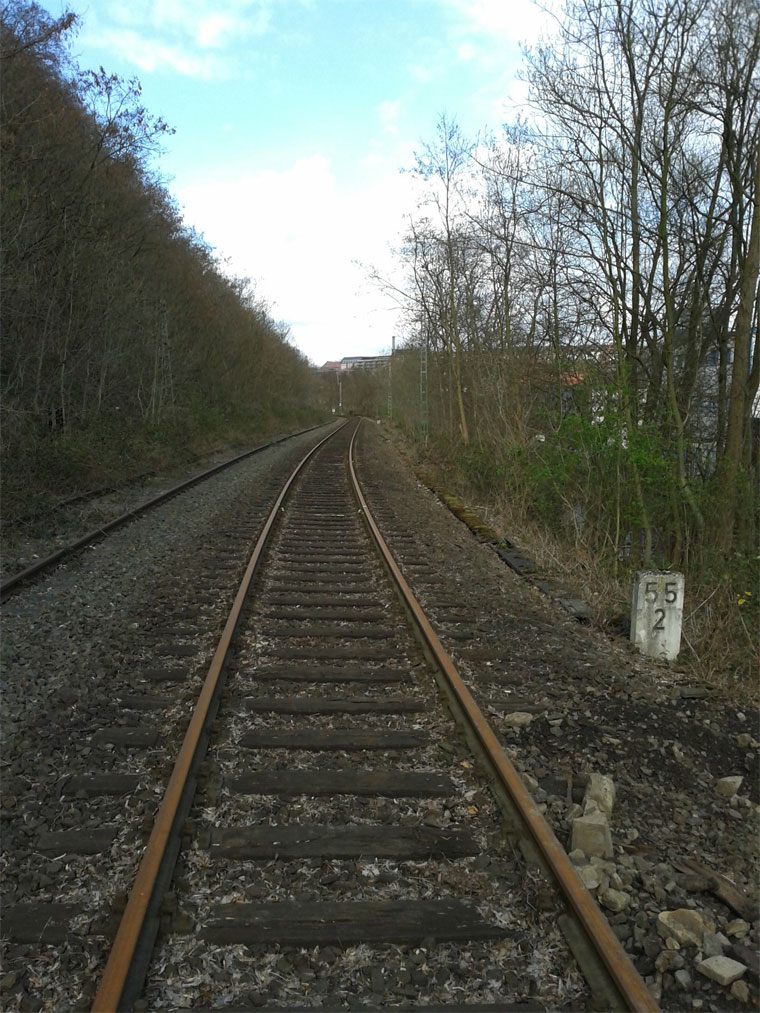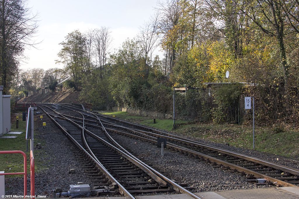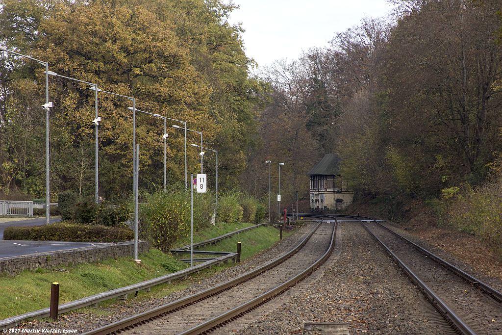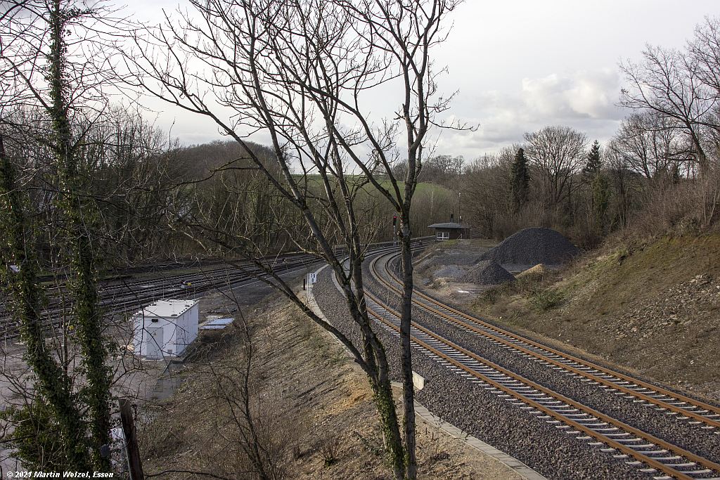 km 3,17 der Strecke Düsseldorf Hbf 0,0 - Essen-Werden 24,97 - Essen-Kupferdreh 33,50 - Bochum-Dahlhausen 45,15 - Wengern Ost 67,49 - HagenVorhalle 76,02 - Hagen-Hengstey 80,16 - Hagen-Kabel 82,45 mit Zweigstrecke (Düsseldorf Hbf 0,0) - Hagen-Vorhalle 76,02 - Hagen Hbf 80,17 (Güterzuggleise) | ||