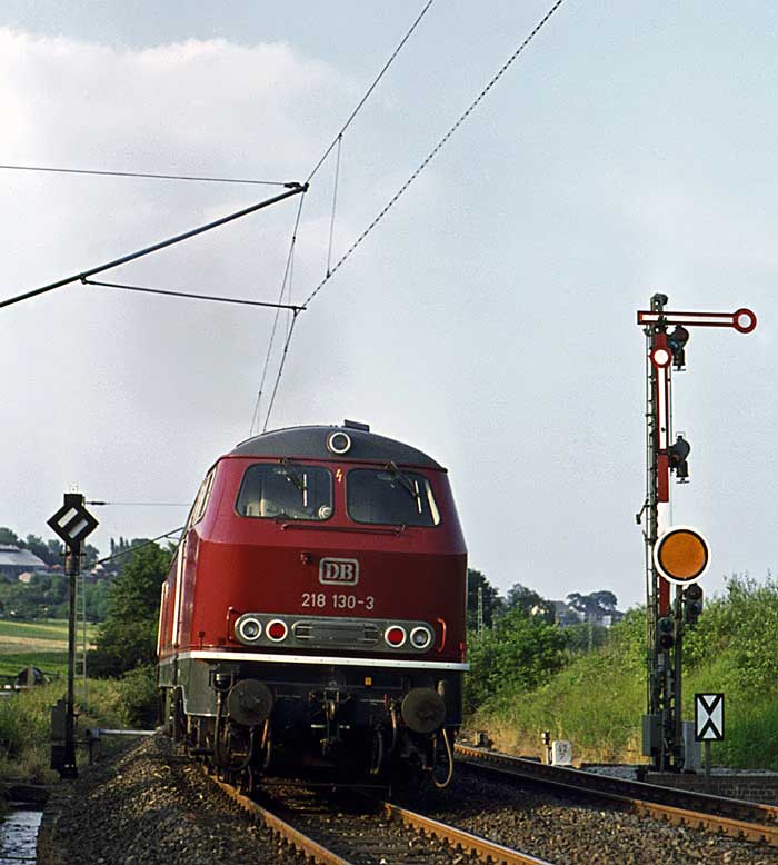 km 42,7 am Einfahrsignal Gevelsberg West - 218 130 kommt vom Schiebedienst zurück