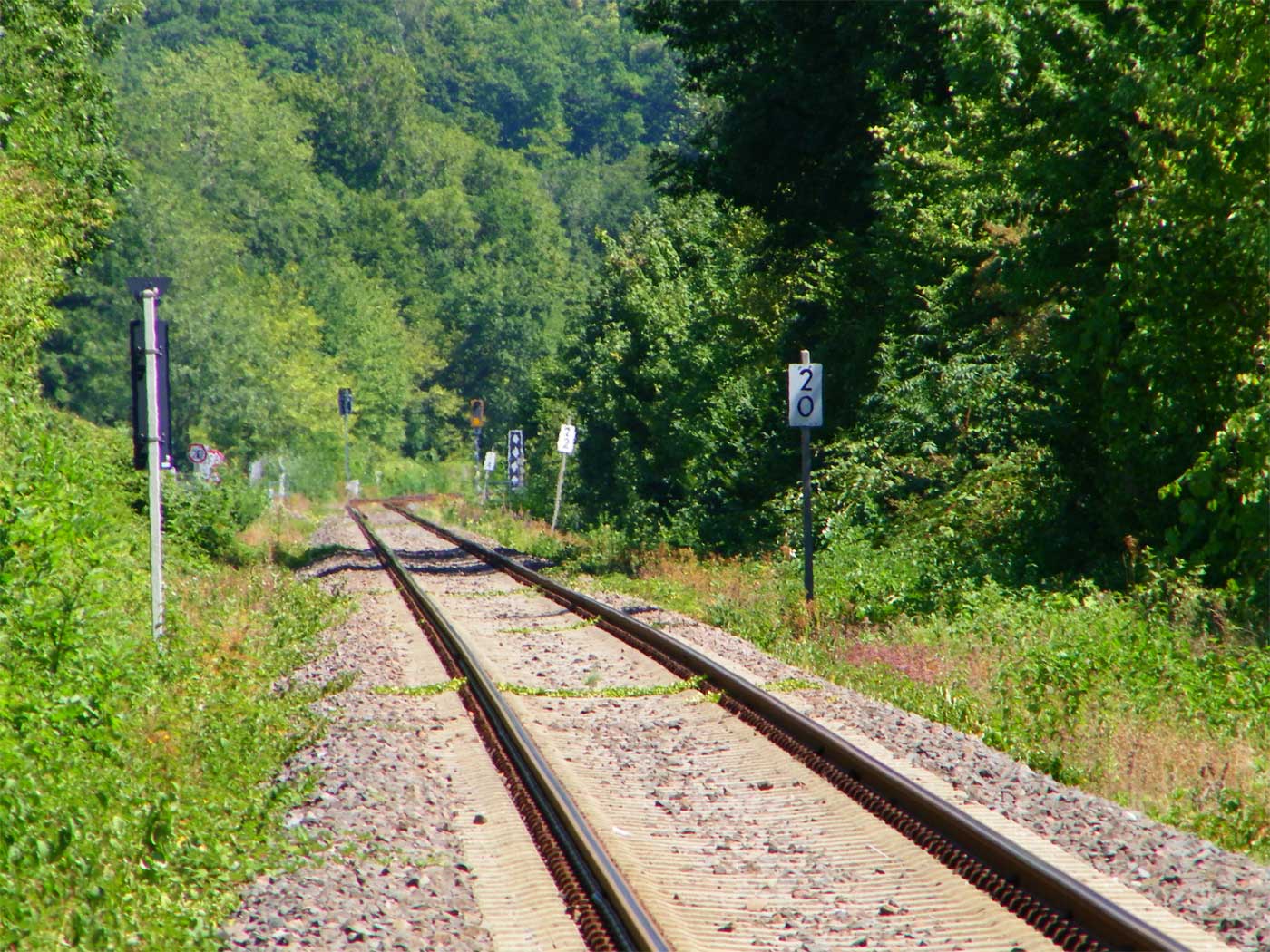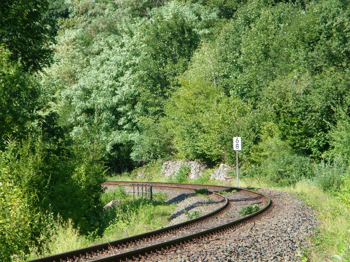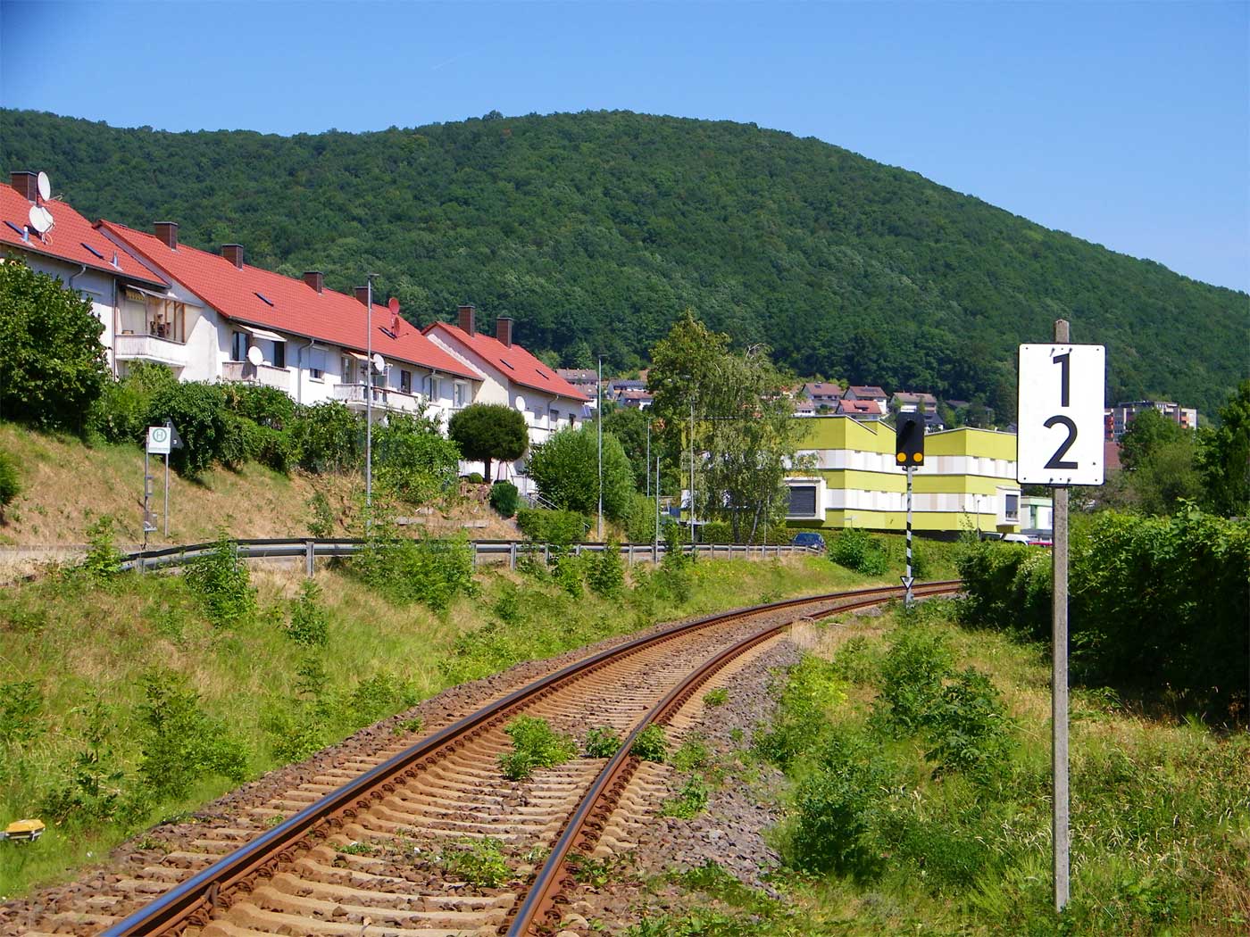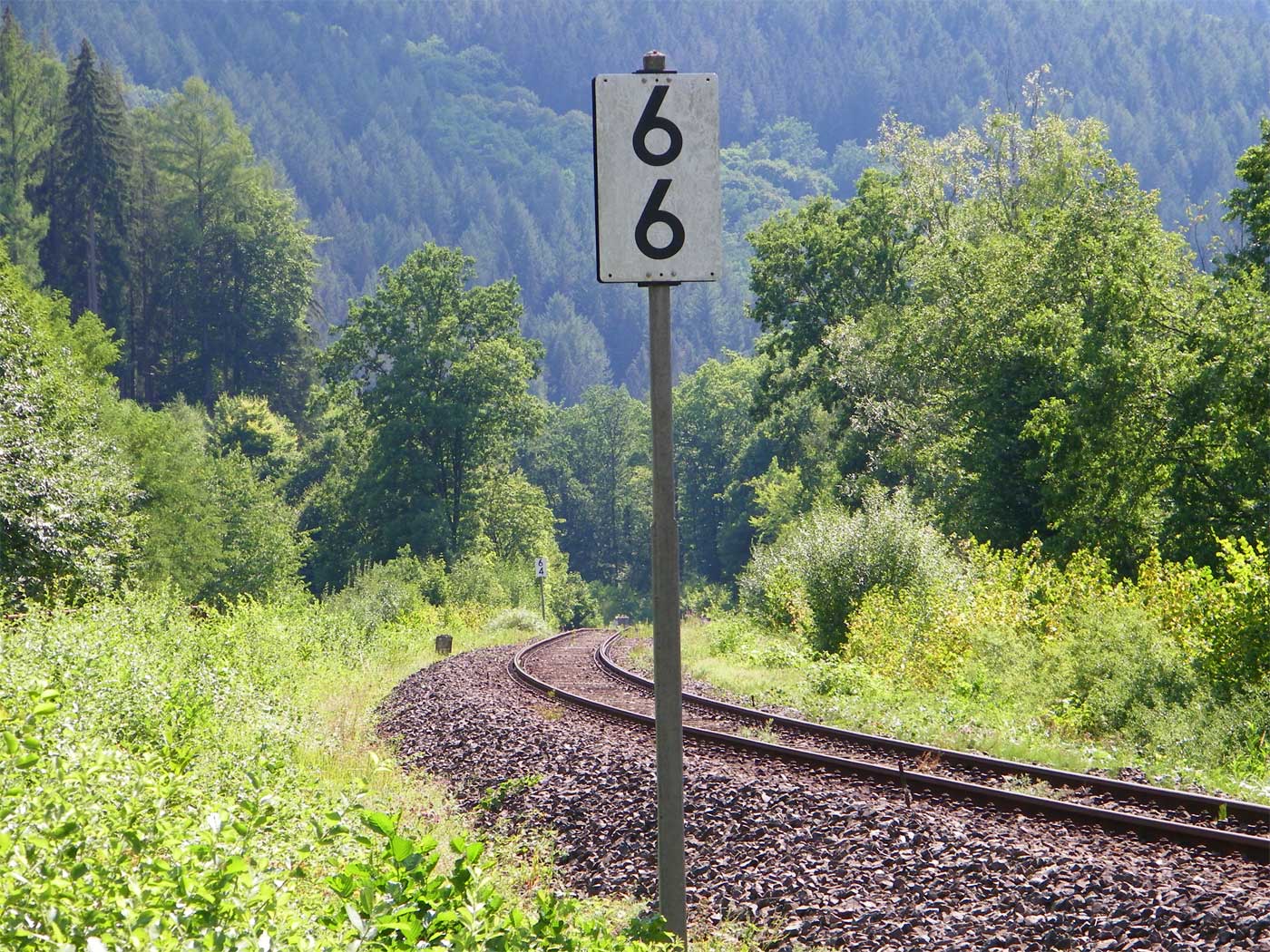 km 63,9 (Stein) und km 64,0 (Tafel) gehören zur Strecke