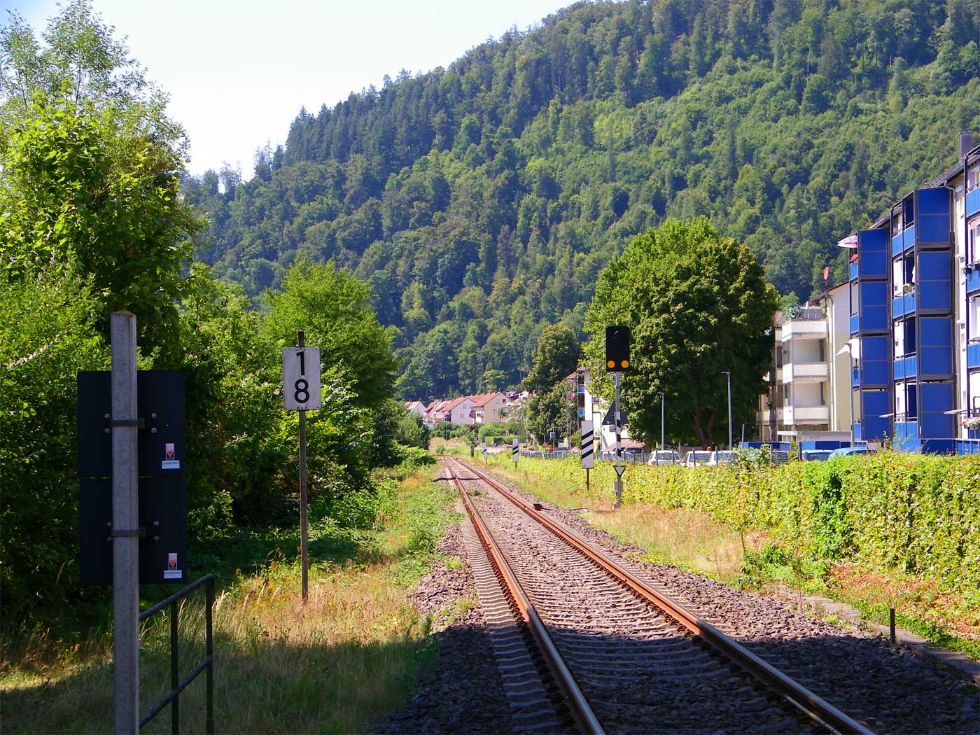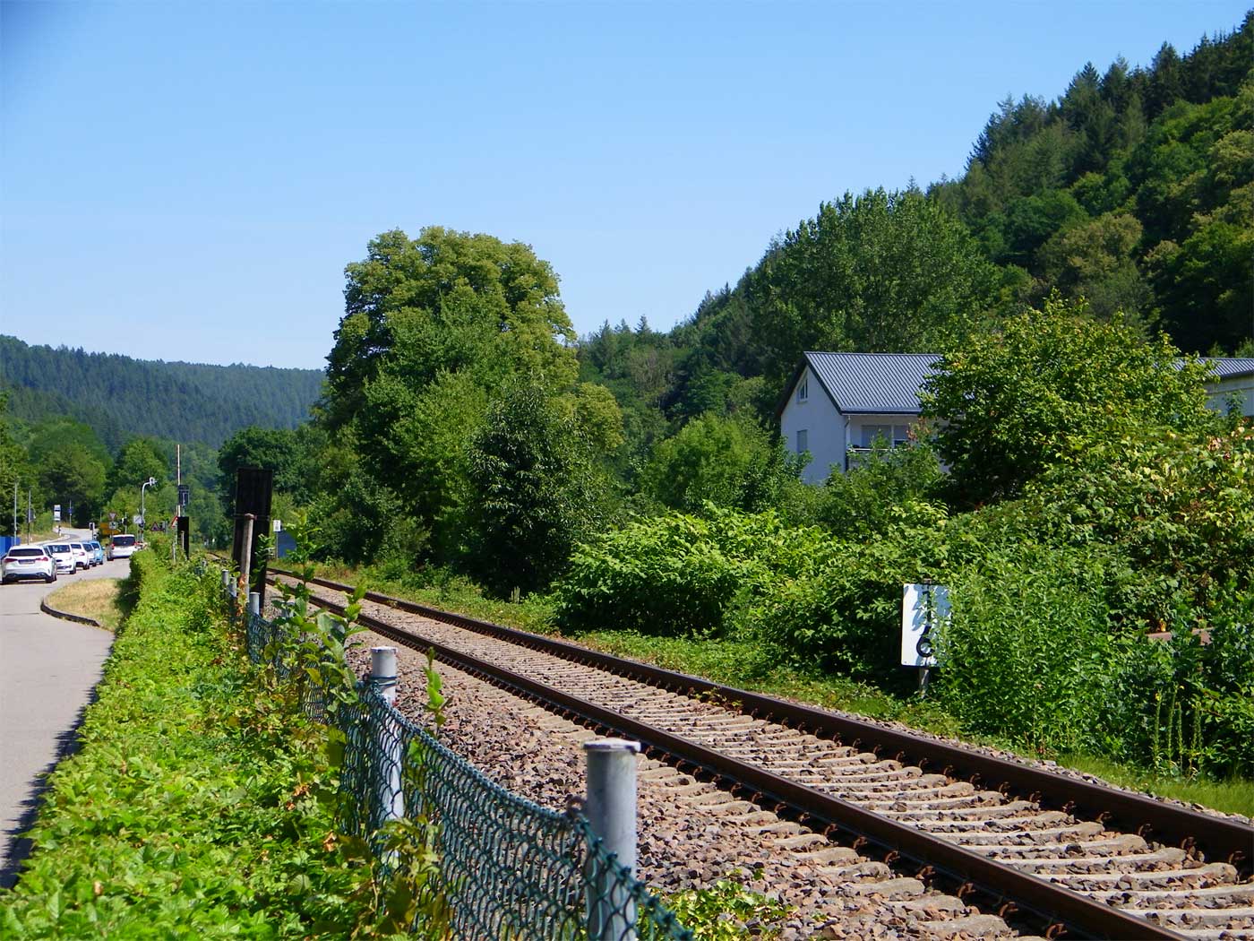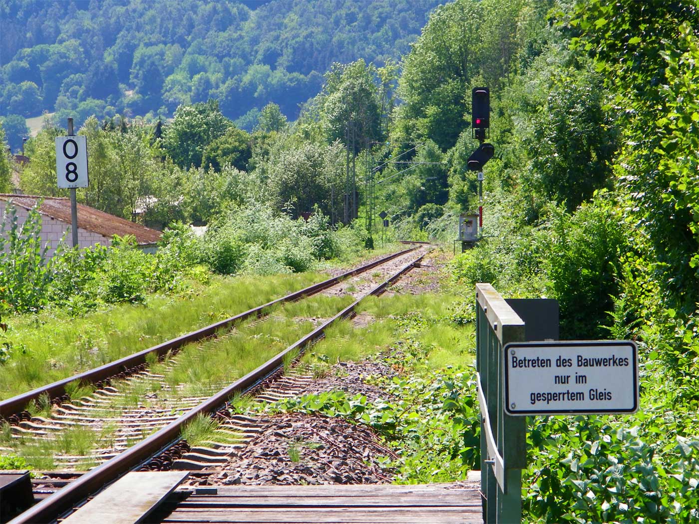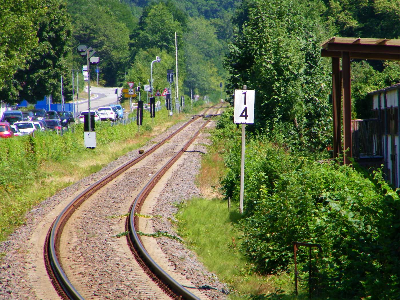 km 63,9 (Stein) und km 64,0 (Tafel) gehören zur Strecke
