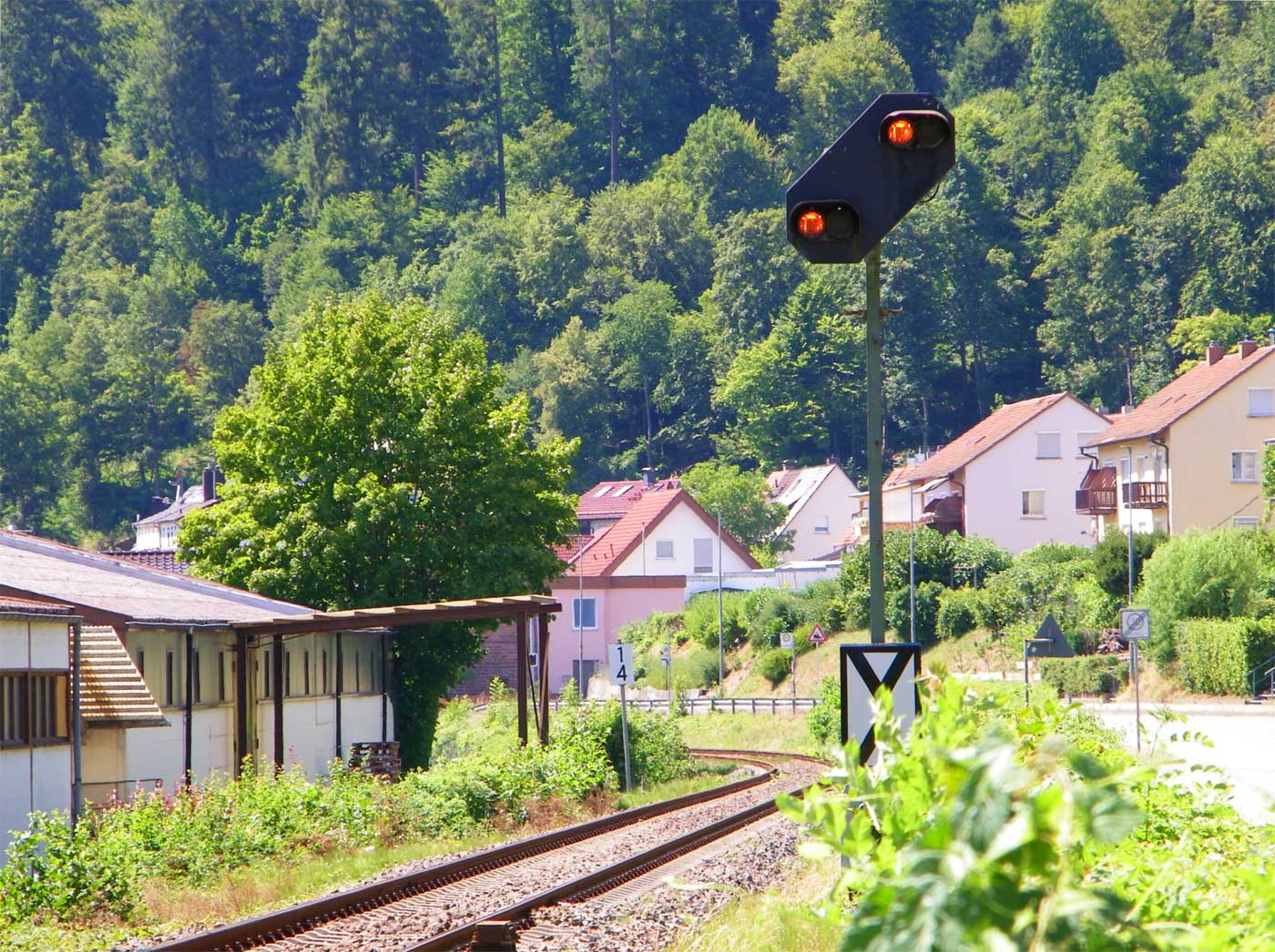 Eberbach 0,0 km 21,20 der Strecke Neckargemünd 0,0 - Eberbach 21,20 - Neckarelz 40,84 - Bad Friedrichshall - Jagstfeld 58,48