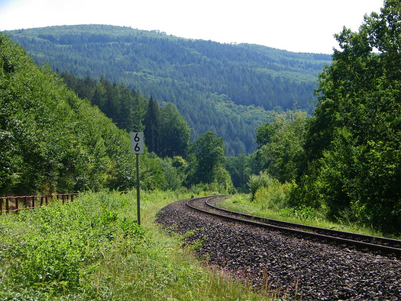 km 63,8 (Tafel und Stein) gehören zur Strecke